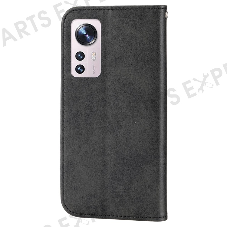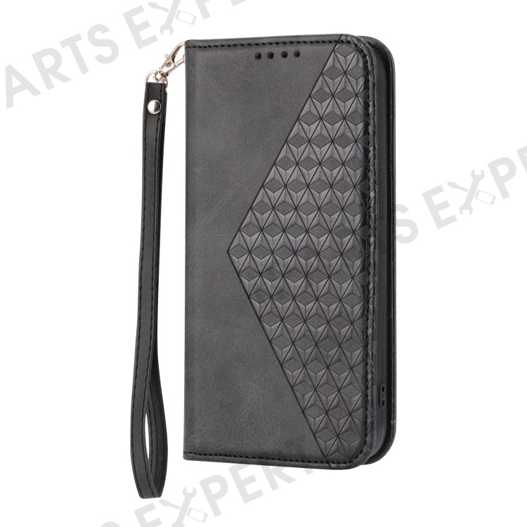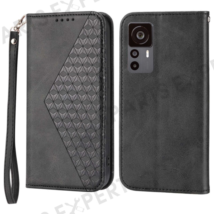 For Xiaomi 12T 5G / Redmi K50 Ultra 5G Rhombus Pattern Imprinted PU Leather Stand Case Calf Texture Shockproof Phone Wallet Cover with Strap - Black