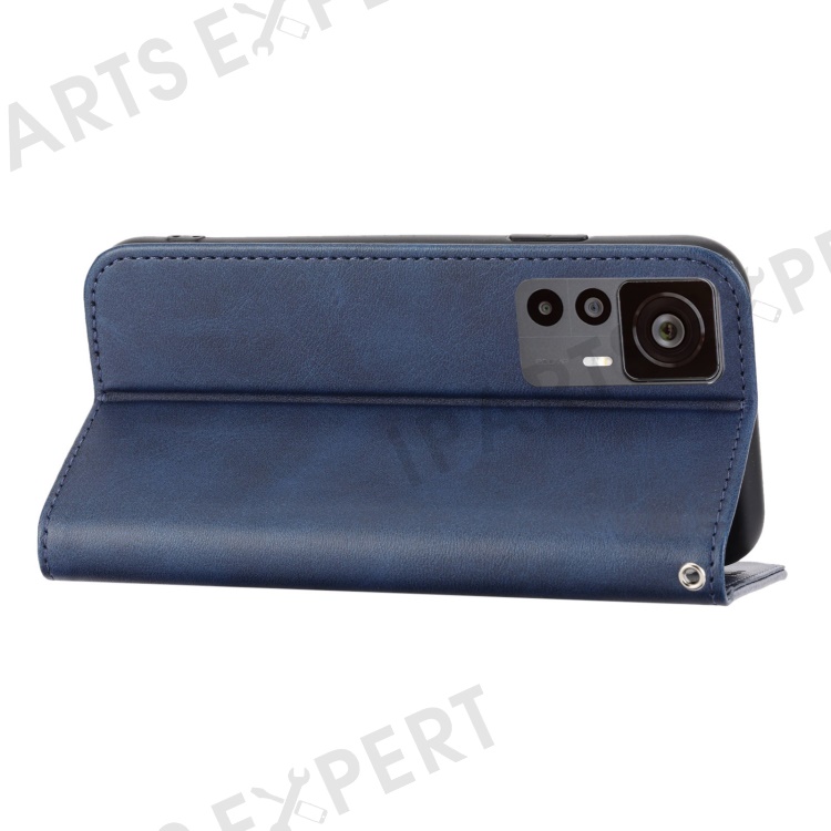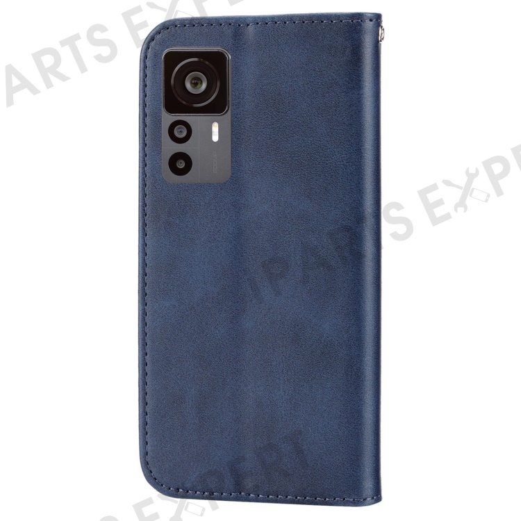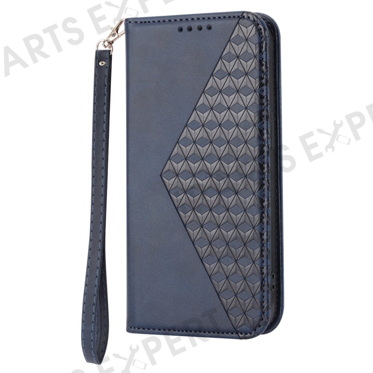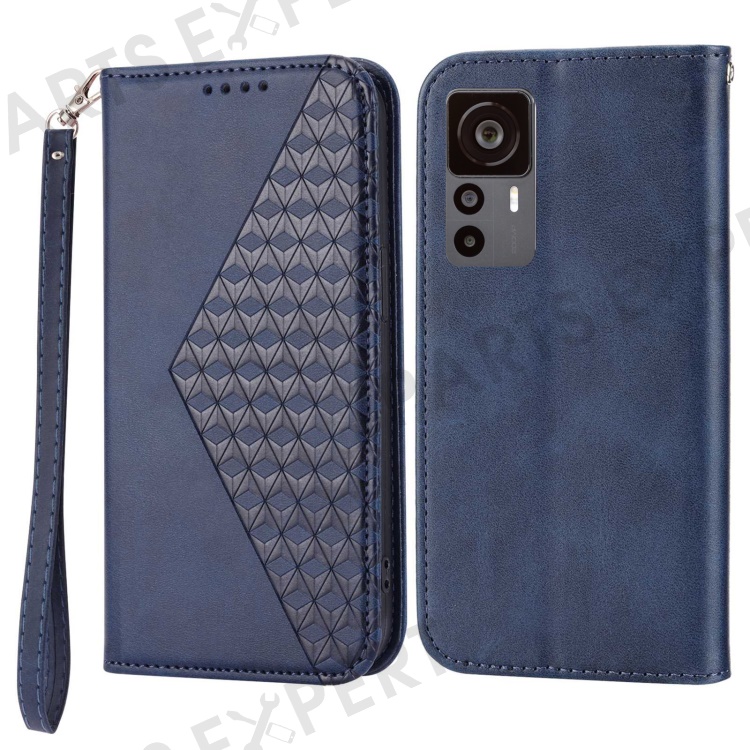 For Xiaomi 12T 5G / Redmi K50 Ultra 5G Rhombus Pattern Imprinted PU Leather Stand Case Calf Texture Shockproof Phone Wallet Cover with Strap - Blue