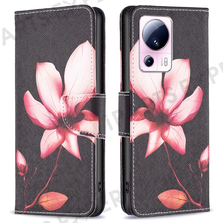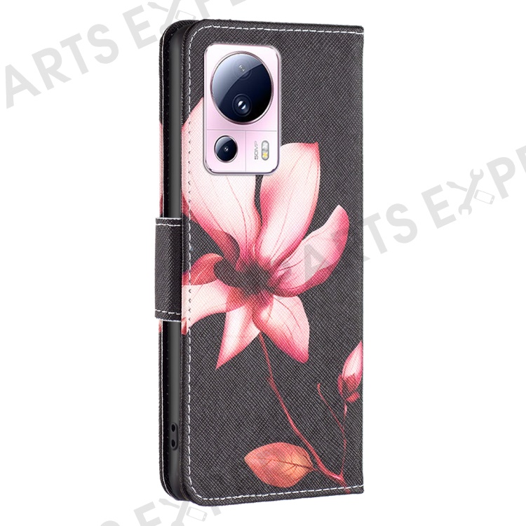 For Xiaomi 13 Lite / Civi 2 5G Wallet Phone Case Pattern Printing PU Leather Flip Stand Cover - Pink Flower