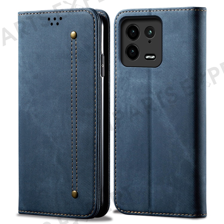 For Xiaomi 13 Pro 5G Jeans Cloth Texture Anti-scratch Cell Phone Case Protective Flip Wallet Cover Stand - Blue