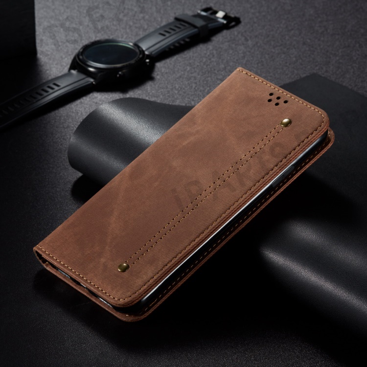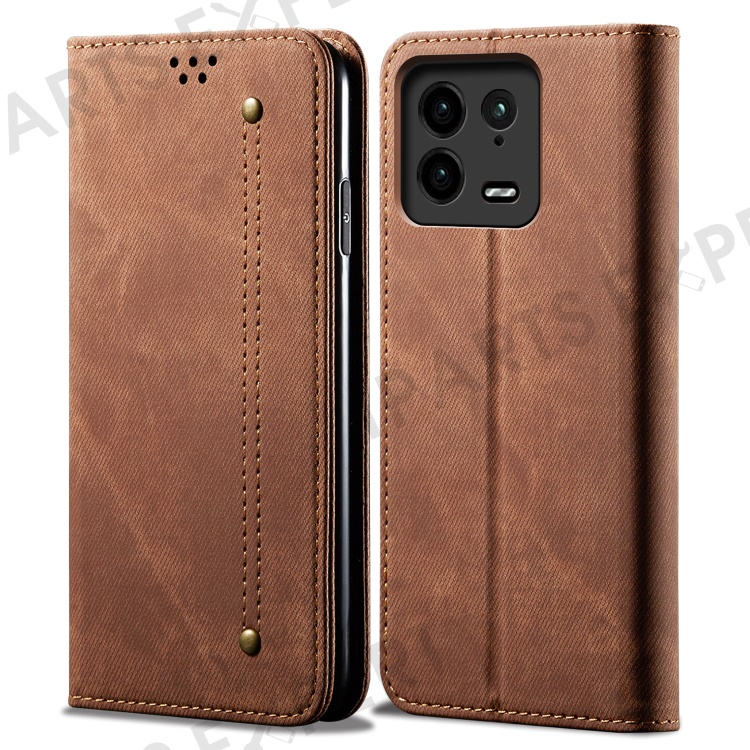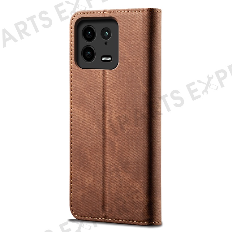 For Xiaomi 13 Pro 5G Jeans Cloth Texture Anti-scratch Cell Phone Case Protective Flip Wallet Cover Stand - Coffee