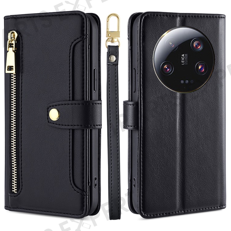 For Xiaomi 13 Ultra Anti-Collision PU Leather+TPU Phone Cover Stand Wallet Case with Zipper Pocket - Black