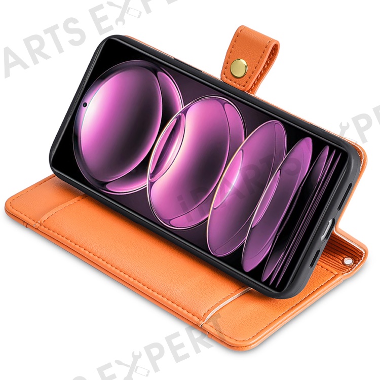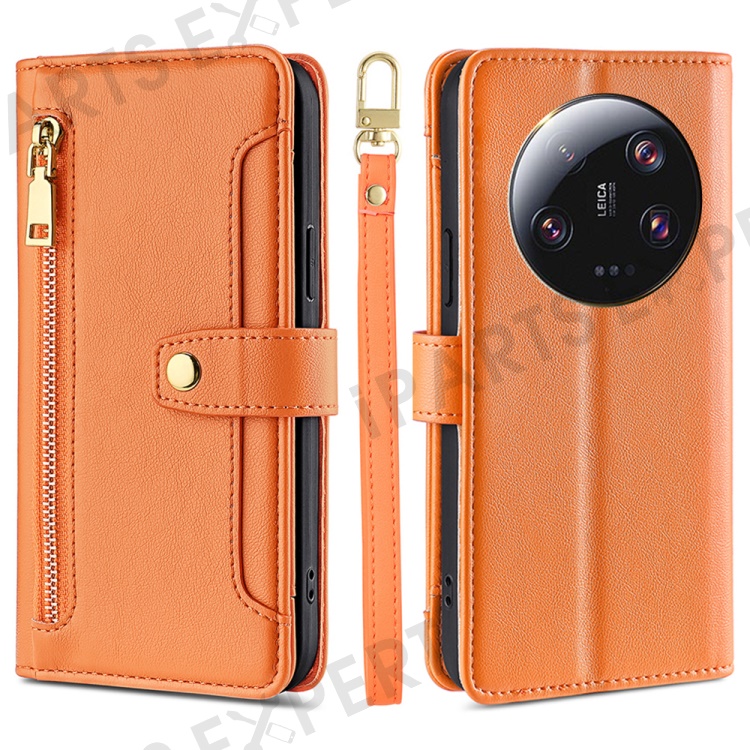For Xiaomi 13 Ultra Anti-Collision PU Leather+TPU Phone Cover Stand Wallet Case with Zipper Pocket - Orange