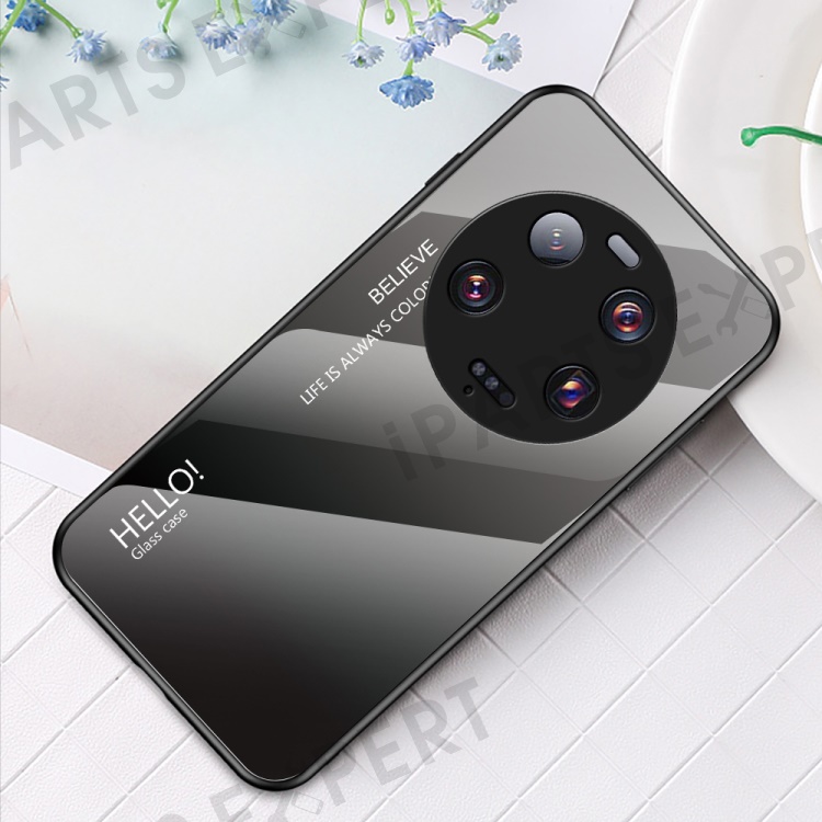 For Xiaomi 13 Ultra Gradient Tempered Glass Phone Case PC+TPU Anti-Scratch Cover - Gradient Black Grey