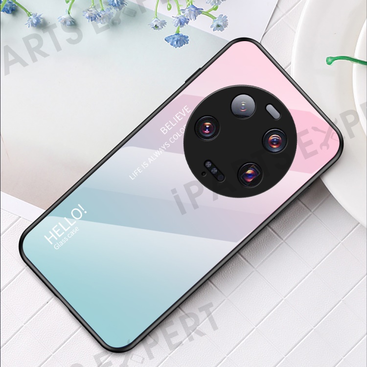 For Xiaomi 13 Ultra Gradient Tempered Glass Phone Case PC+TPU Anti-Scratch Cover - Gradient Pink Blue