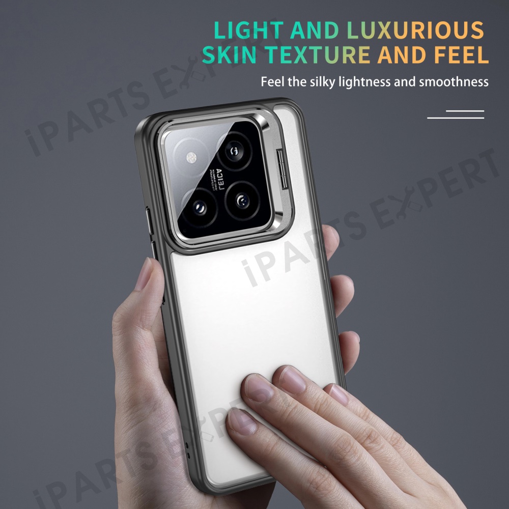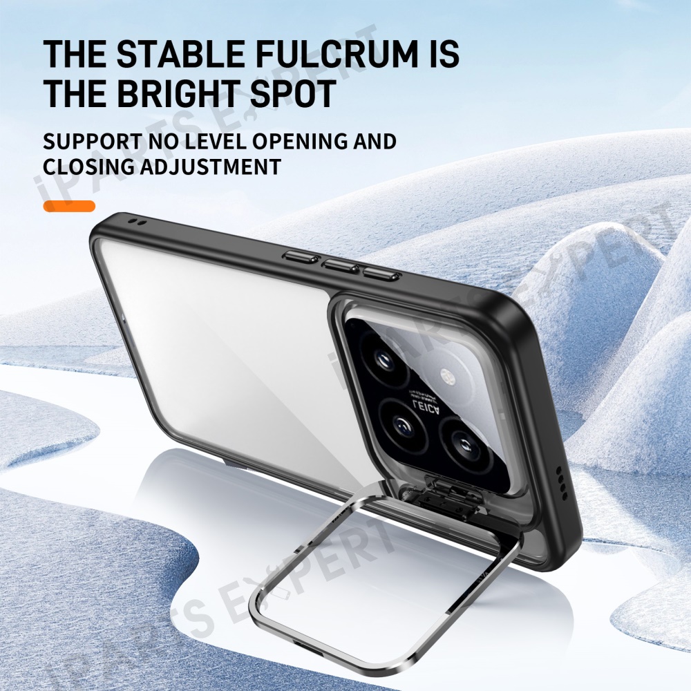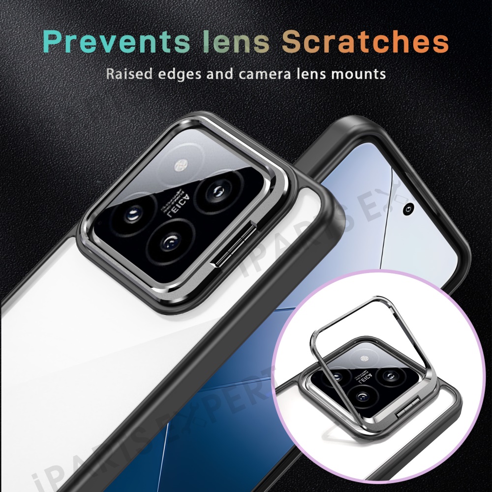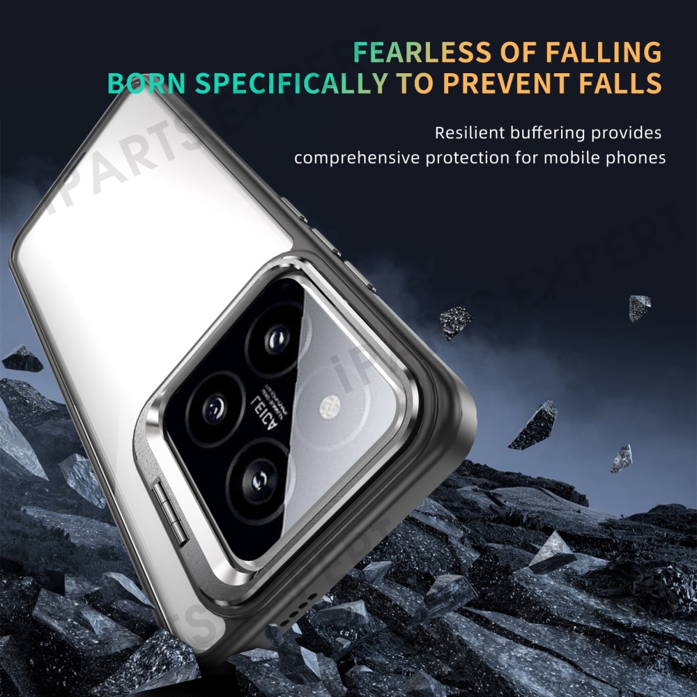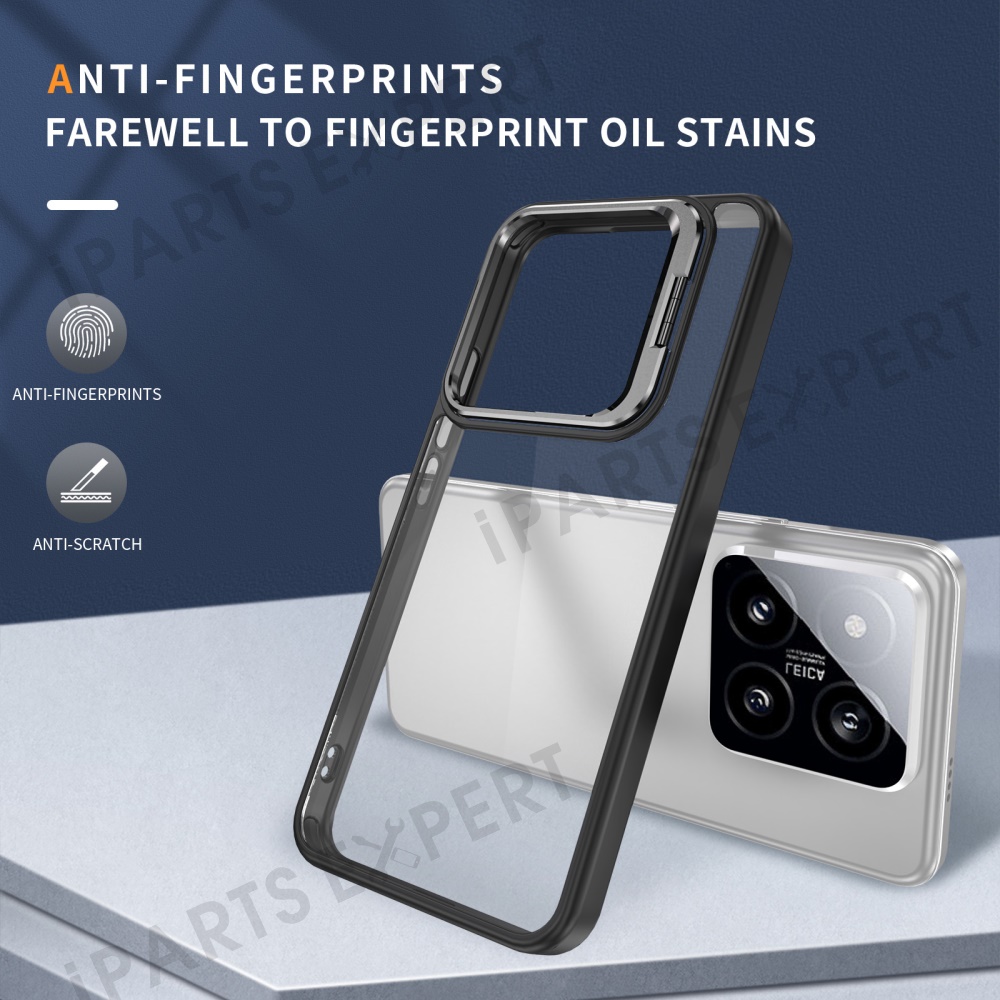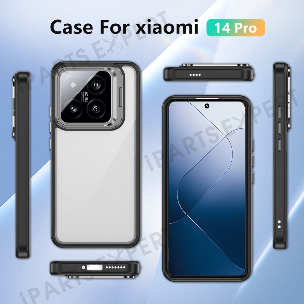 For Xiaomi 14 Pro Case Lens Frame Kickstand TPU + Acrylic Protective Phone Cover - Black