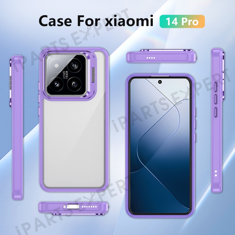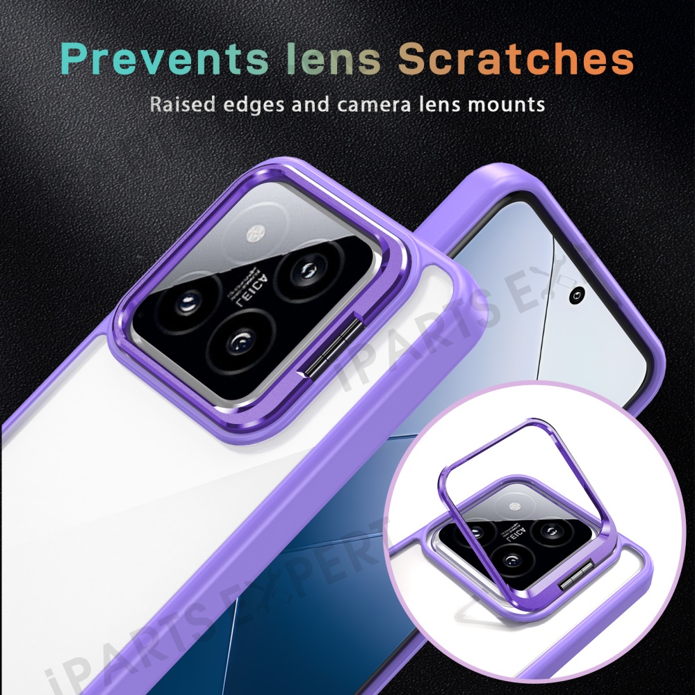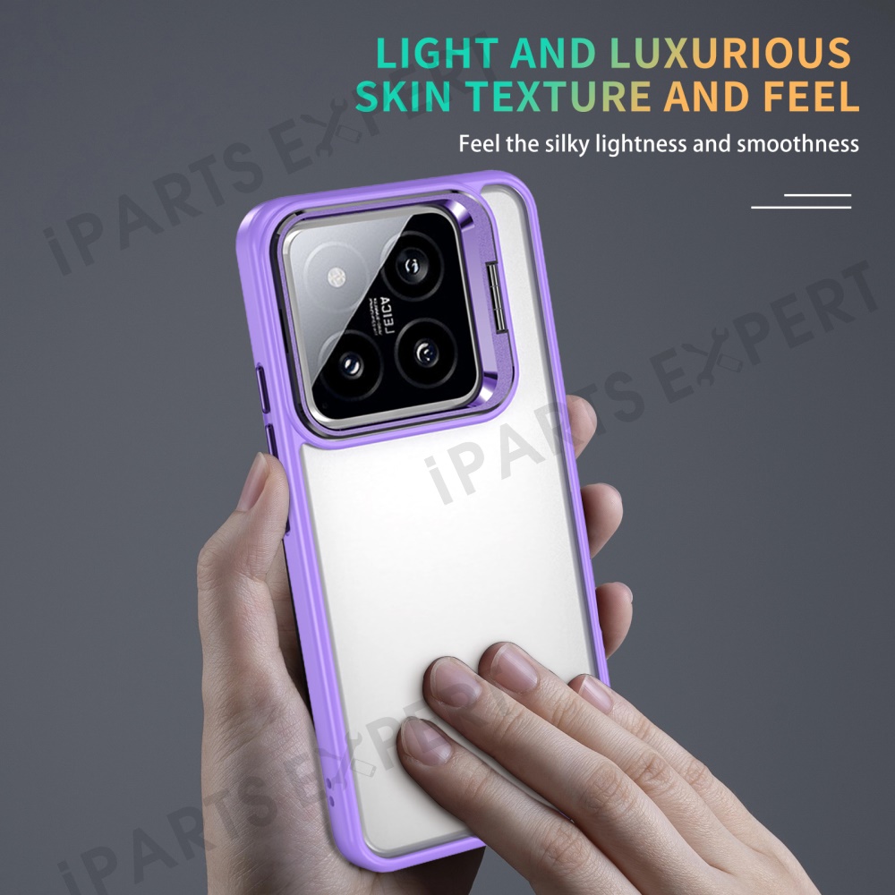 For Xiaomi 14 Pro Case Lens Frame Kickstand TPU + Acrylic Protective Phone Cover - Light Purple