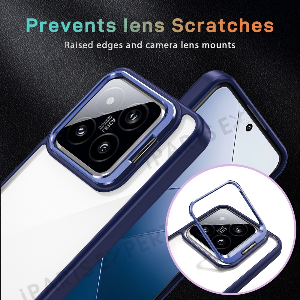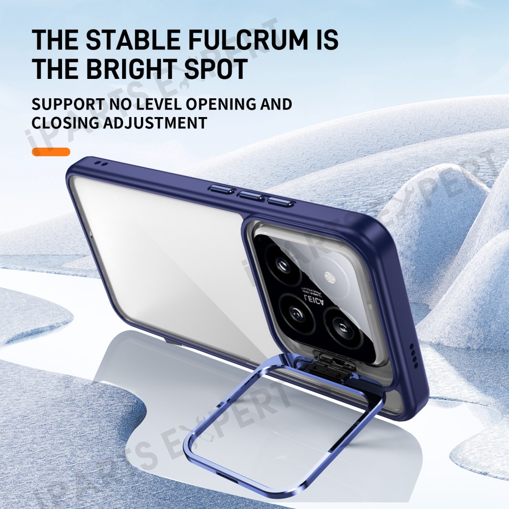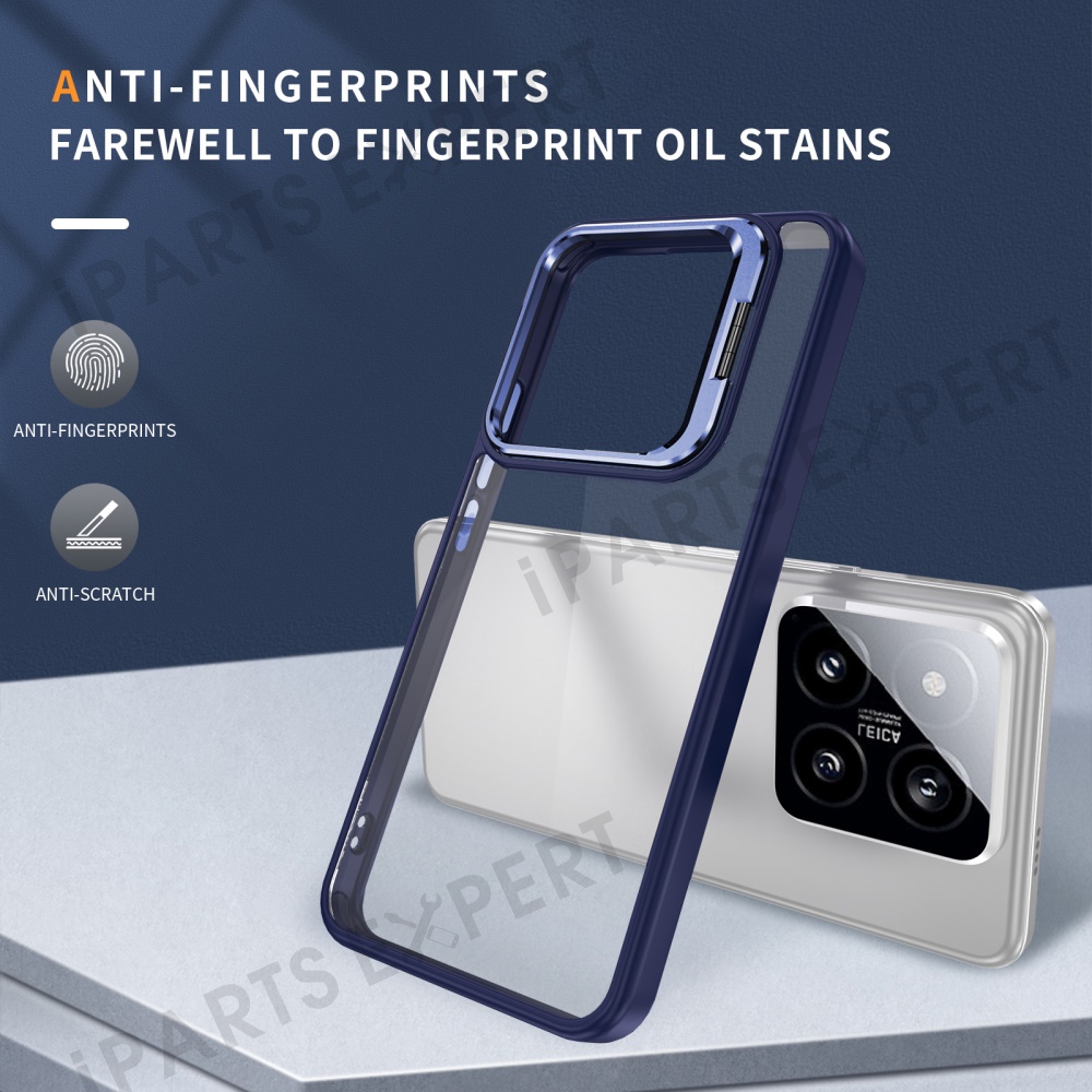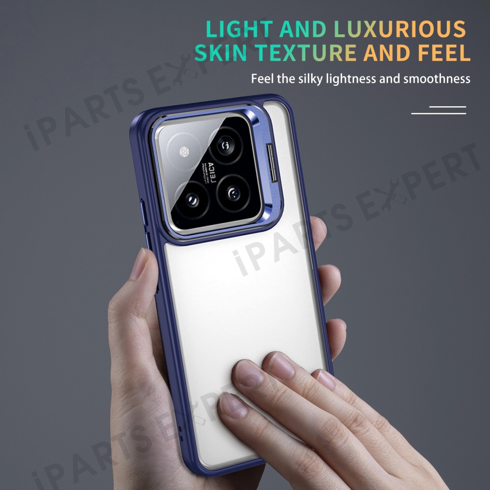 For Xiaomi 14 Pro Case Lens Frame Kickstand TPU + Acrylic Protective Phone Cover - Sapphire