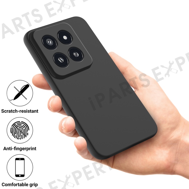 For Xiaomi 14 Pro Silicone Case Shockproof Phone Back Cover with Wrist Strap - Black