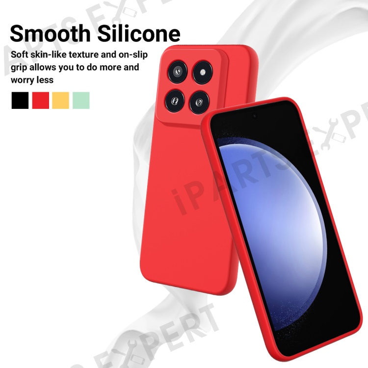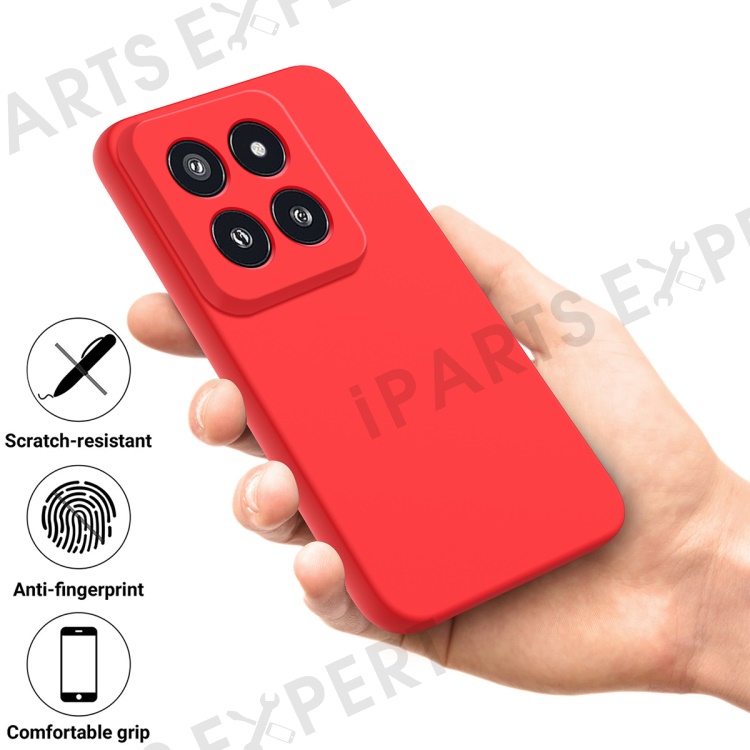 For Xiaomi 14 Pro Silicone Case Shockproof Phone Back Cover with Wrist Strap - Red
