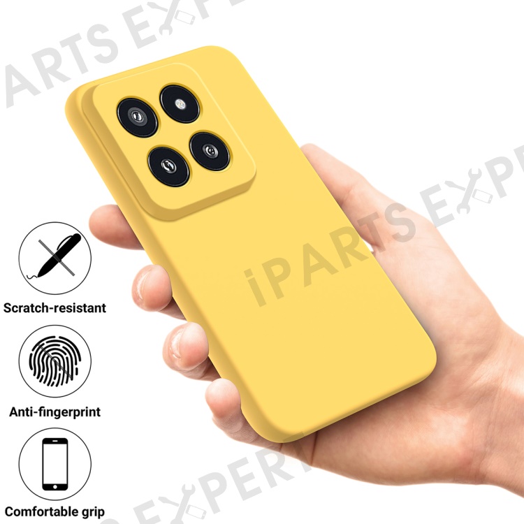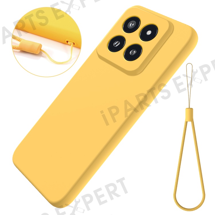 For Xiaomi 14 Pro Silicone Case Shockproof Phone Back Cover with Wrist Strap - Yellow