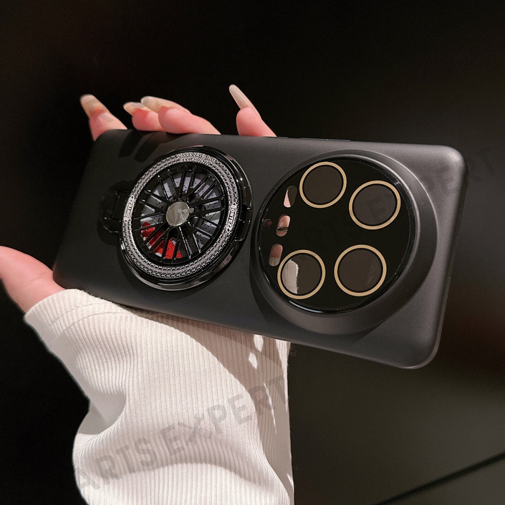 For Xiaomi 14 Ultra PC Phone Case Rotating Spinner Ring Kickstand Rubberized Back Cover - Black