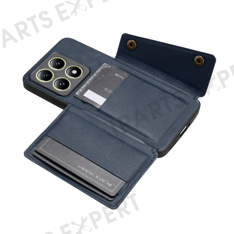 For Xiaomi 14T Case Card Slots Kickstand Leather + TPU Phone Cover - Blue