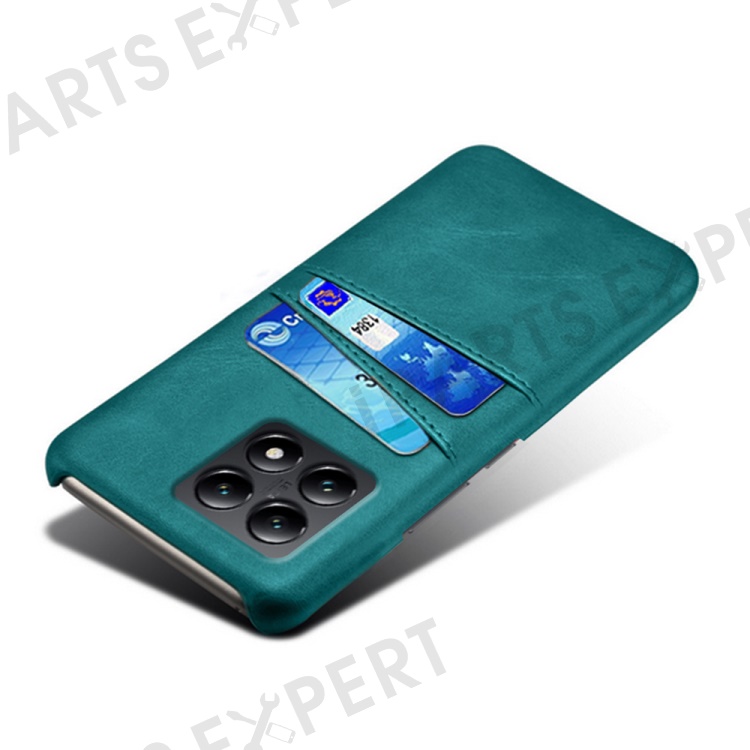 For Xiaomi 14T Case Dual Card Slots PU Leather + Hard PC Phone Cover - Green