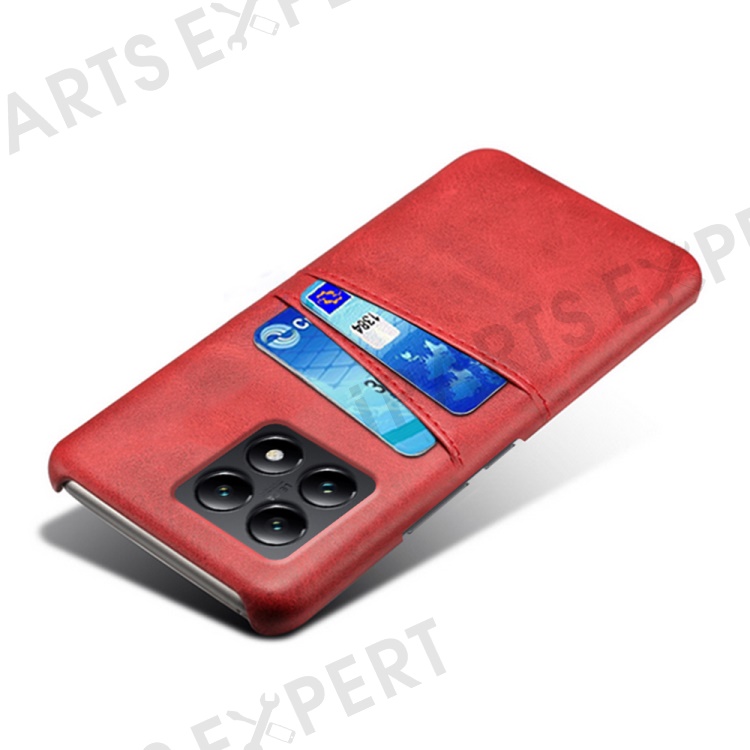 For Xiaomi 14T Case Dual Card Slots PU Leather + Hard PC Phone Cover - Red