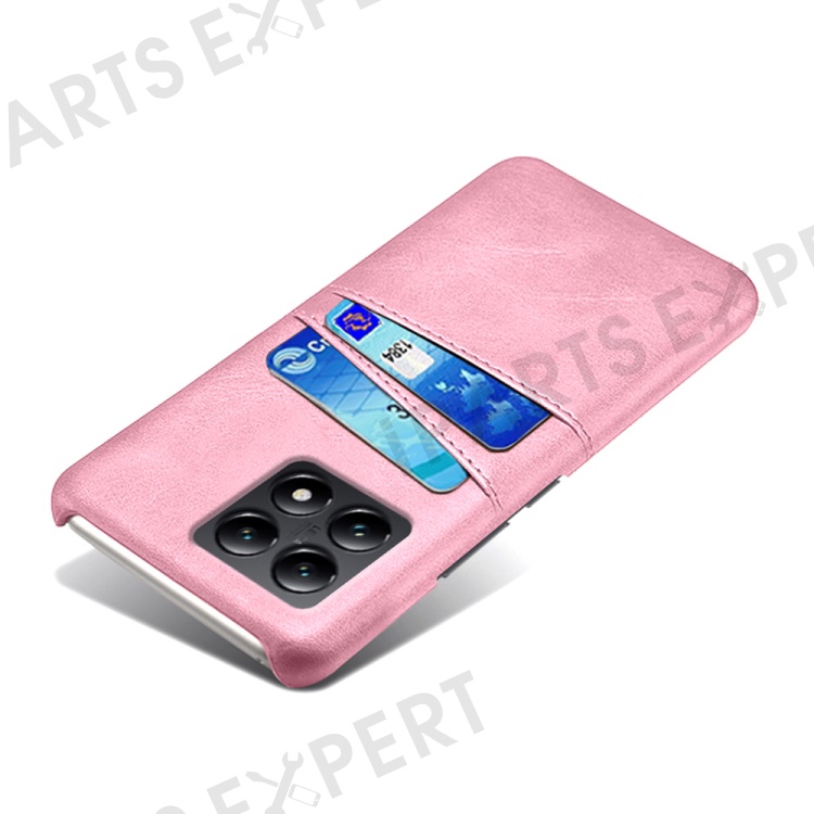 For Xiaomi 14T Case Dual Card Slots PU Leather + Hard PC Phone Cover - Rose Gold