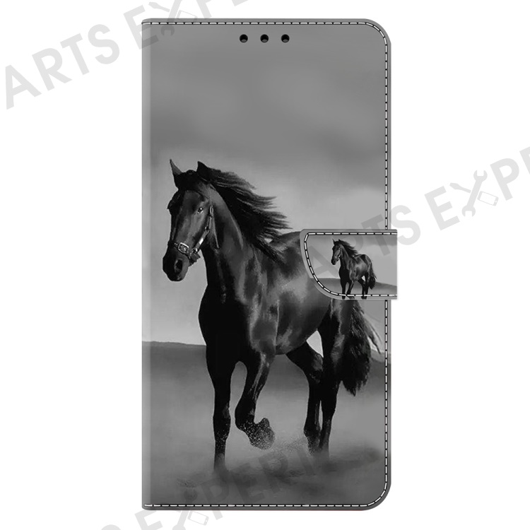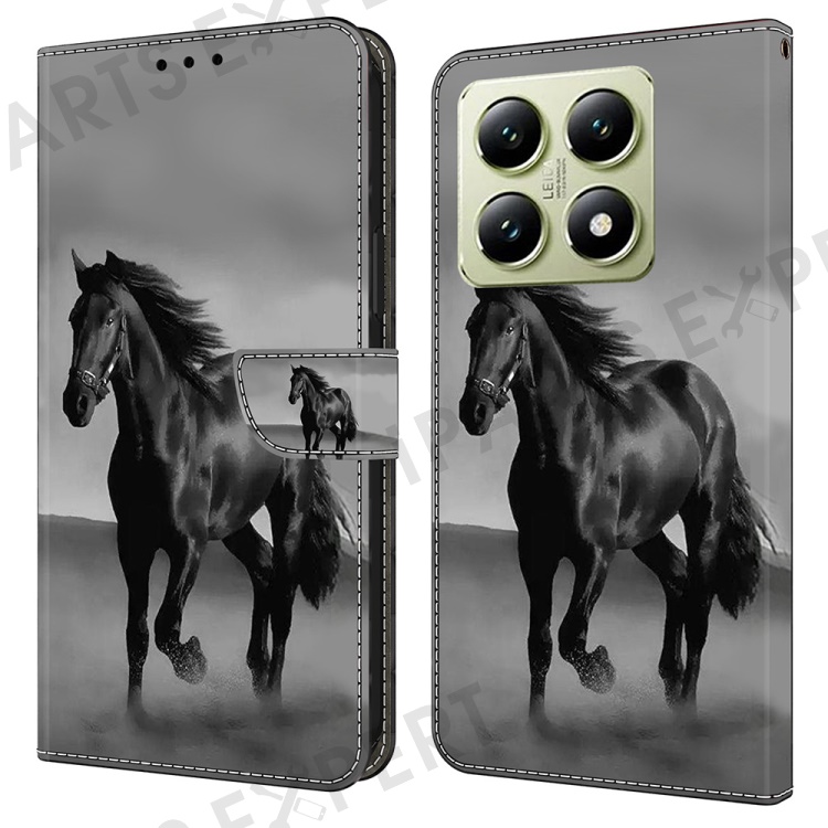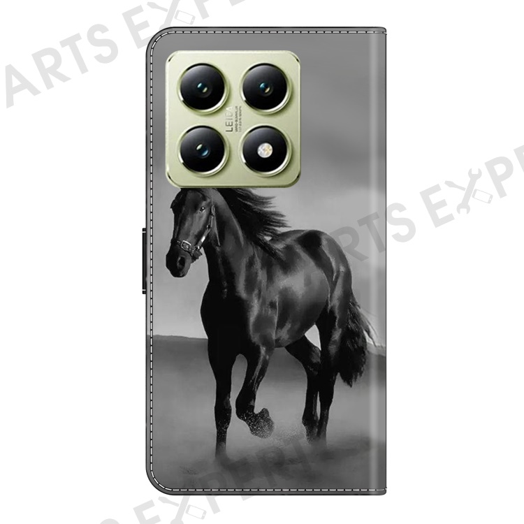 For Xiaomi 14T Case Magnetic Clasp 3D Pattern Leather Wallet Phone Cover - Black Horse
