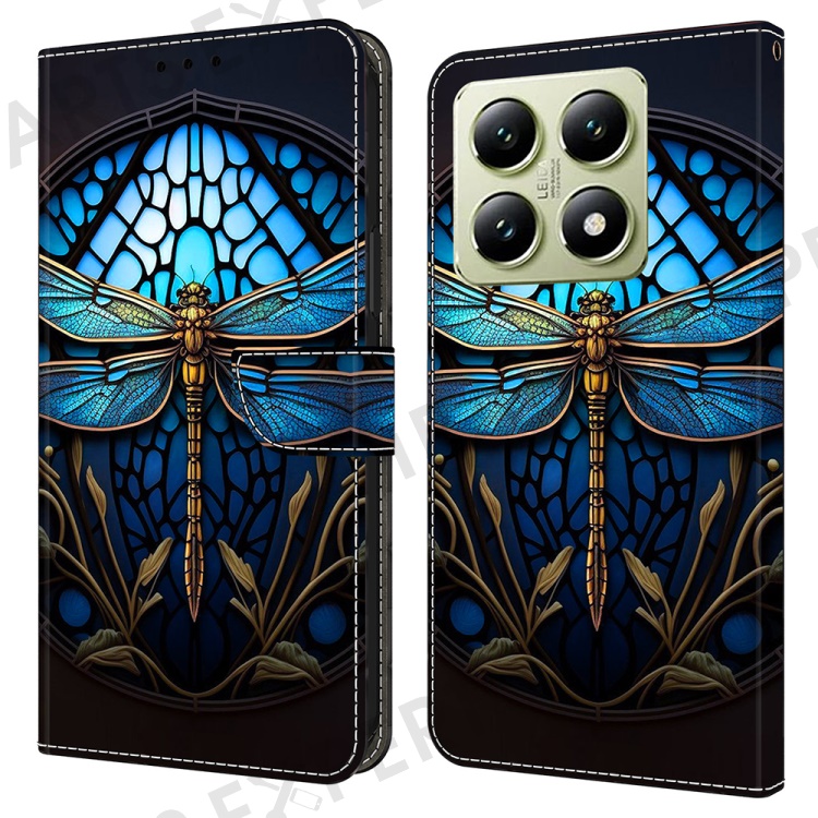 For Xiaomi 14T Case Pattern Printed Protective Cover TPU+PU Leather Flip Phone Case - Blue Dragonfly