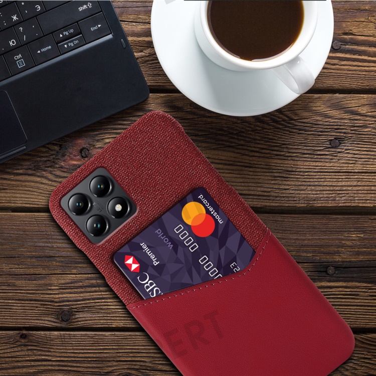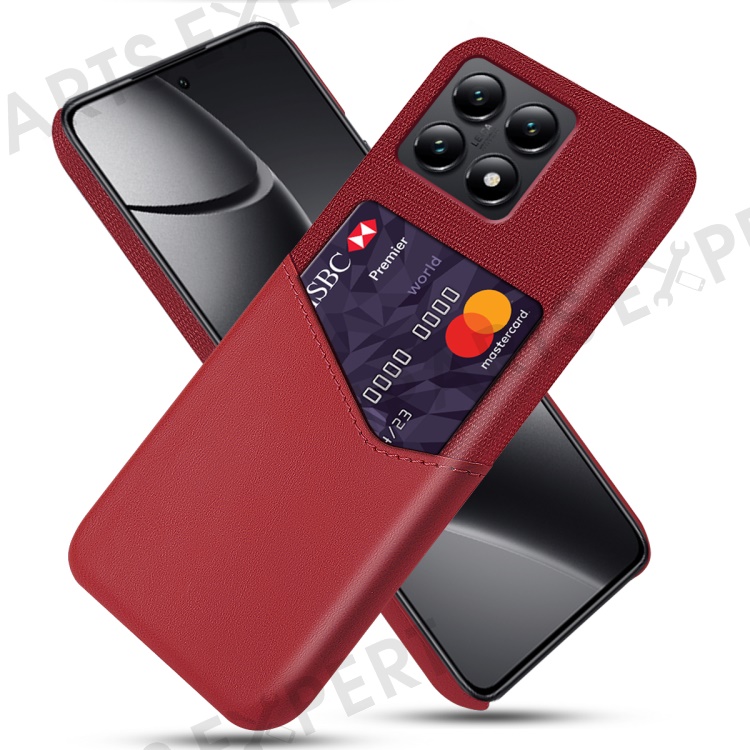 For Xiaomi 14T Case PU Leather Cloth Texture Hard PC Phone Cover with Card Holder - Red