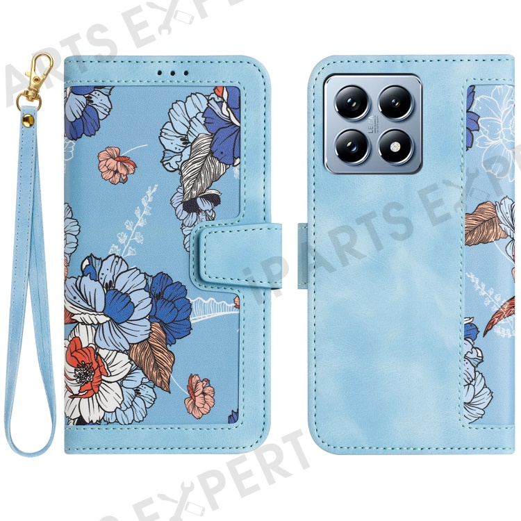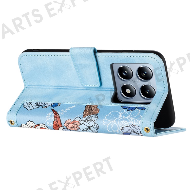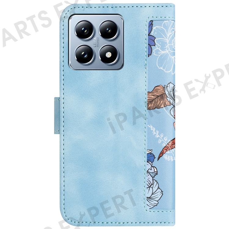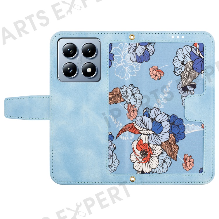 For Xiaomi 14T Case PU Leather Floral Phone Cover with Card Slots - Baby Blue