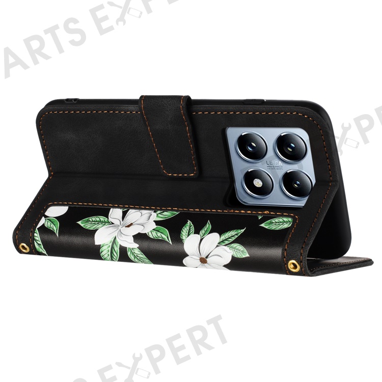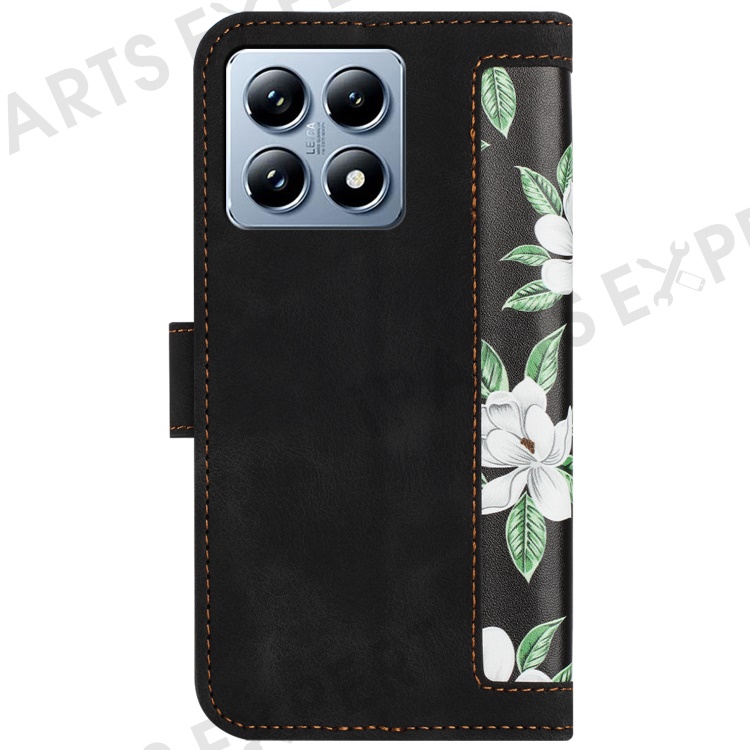 For Xiaomi 14T Case PU Leather Floral Phone Cover with Card Slots - Black