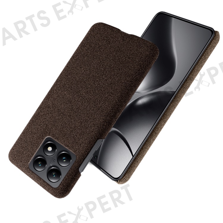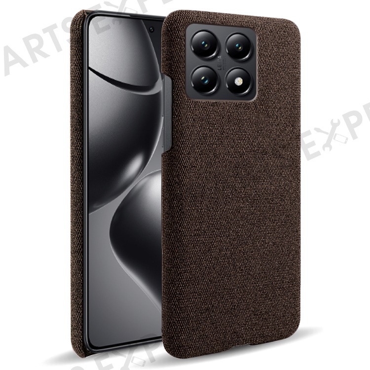 For Xiaomi 14T Phone Case Cloth Texture Anti-Scratch Protective PC Back Cover - Brown