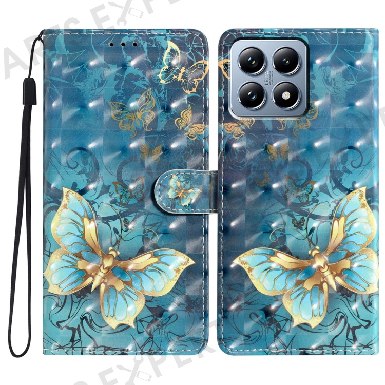 For Xiaomi 14T Pro Case PU Leather Wallet Phone Cover 3D Pattern Printing - Butterfly