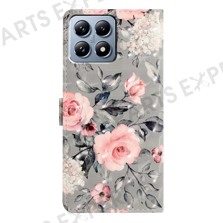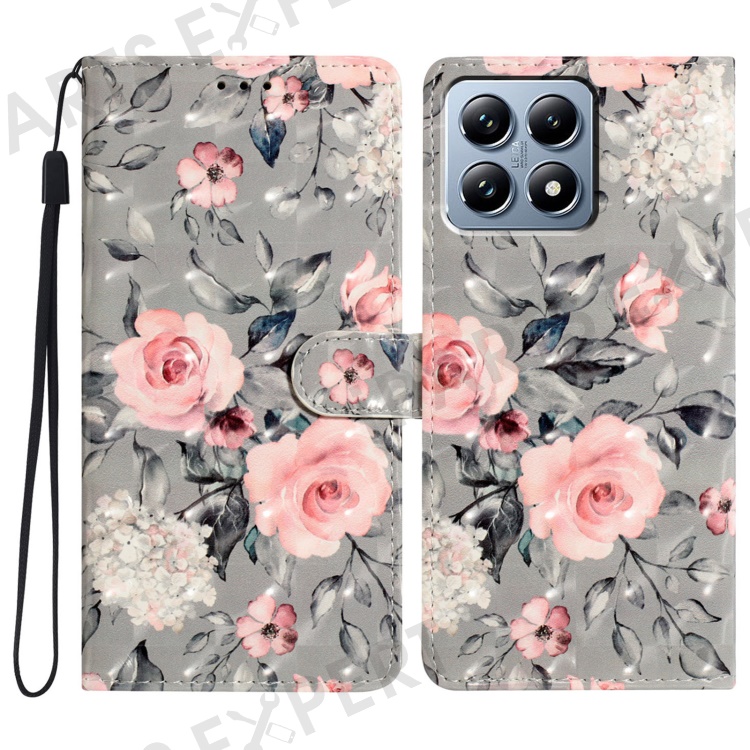For Xiaomi 14T Pro Case PU Leather Wallet Phone Cover 3D Pattern Printing - Flowers