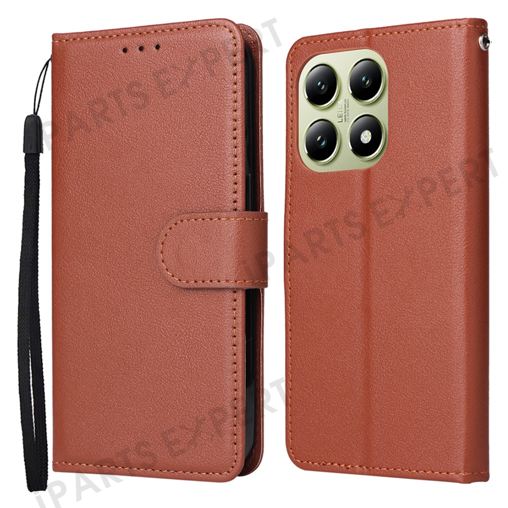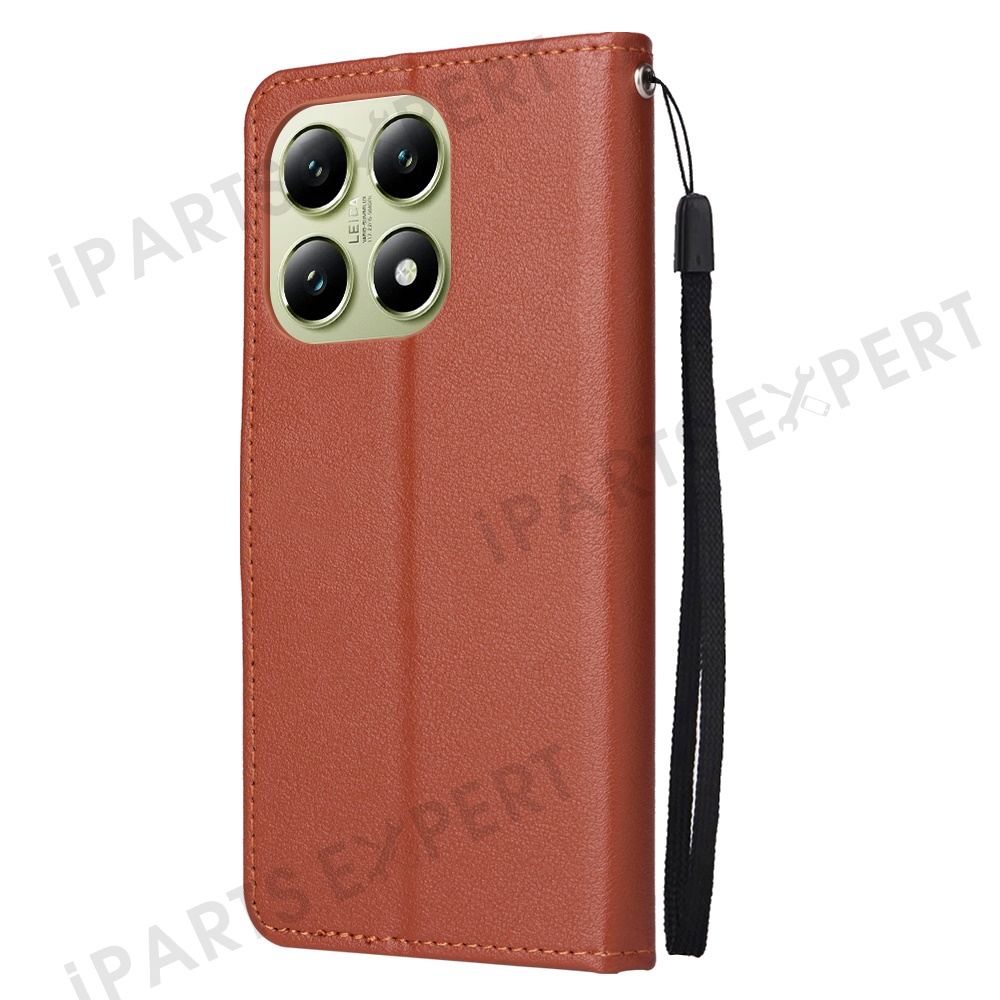 For Xiaomi 14T Pro Case Wallet Stand View PU Leather Phone Cover - Brown