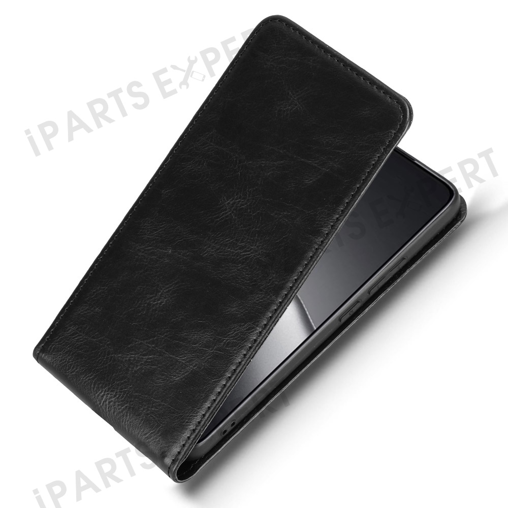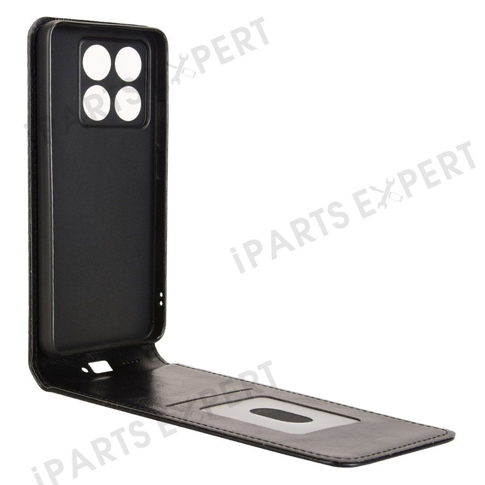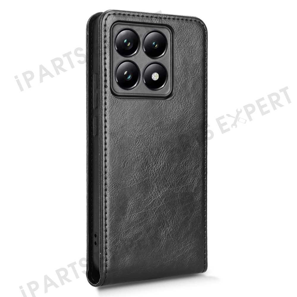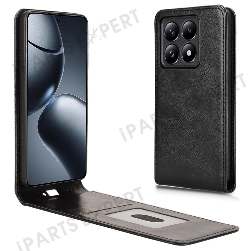 For Xiaomi 14T Pro Case with Card Slot Magnetic Vertical Flip Leather Phone Cover - Black