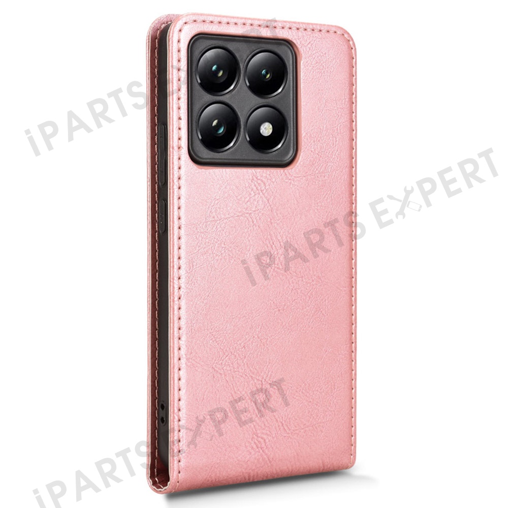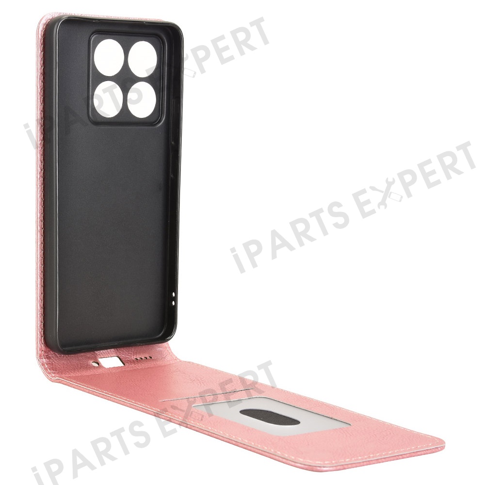 For Xiaomi 14T Pro Case with Card Slot Magnetic Vertical Flip Leather Phone Cover - Rose Gold