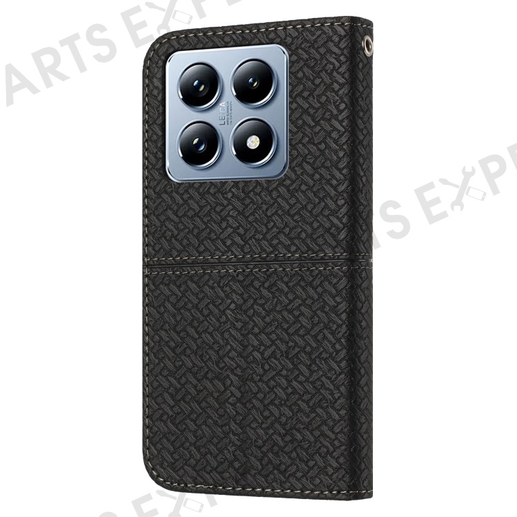 For Xiaomi 14T Pro Case Woven Texture PU Leather Wallet Phone Cover - Black