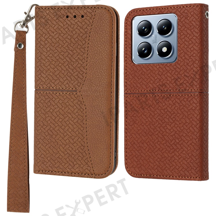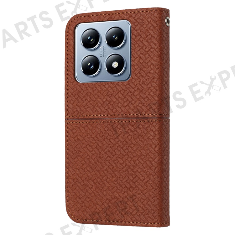 For Xiaomi 14T Pro Case Woven Texture PU Leather Wallet Phone Cover - Brown