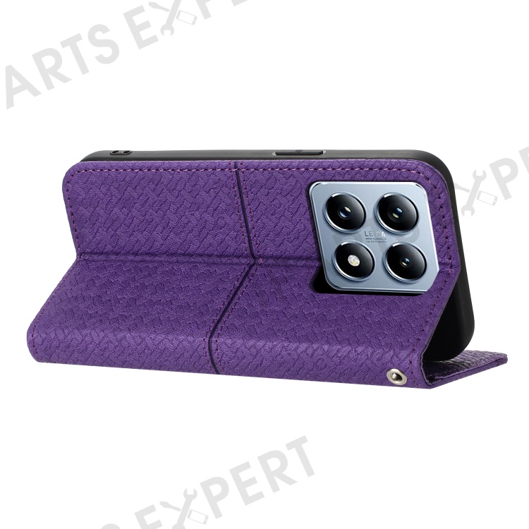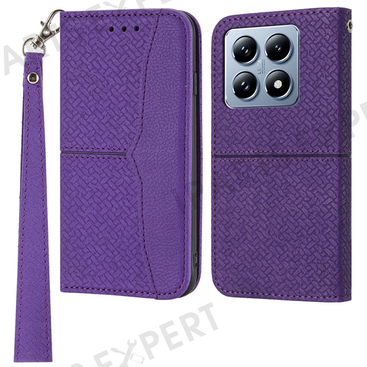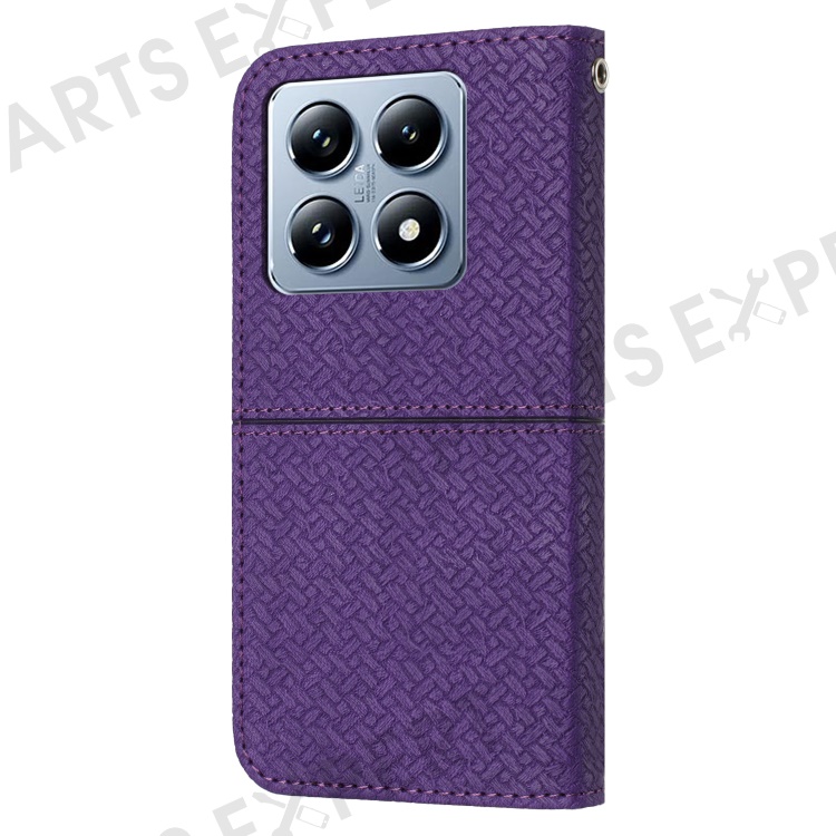 For Xiaomi 14T Pro Case Woven Texture PU Leather Wallet Phone Cover - Purple