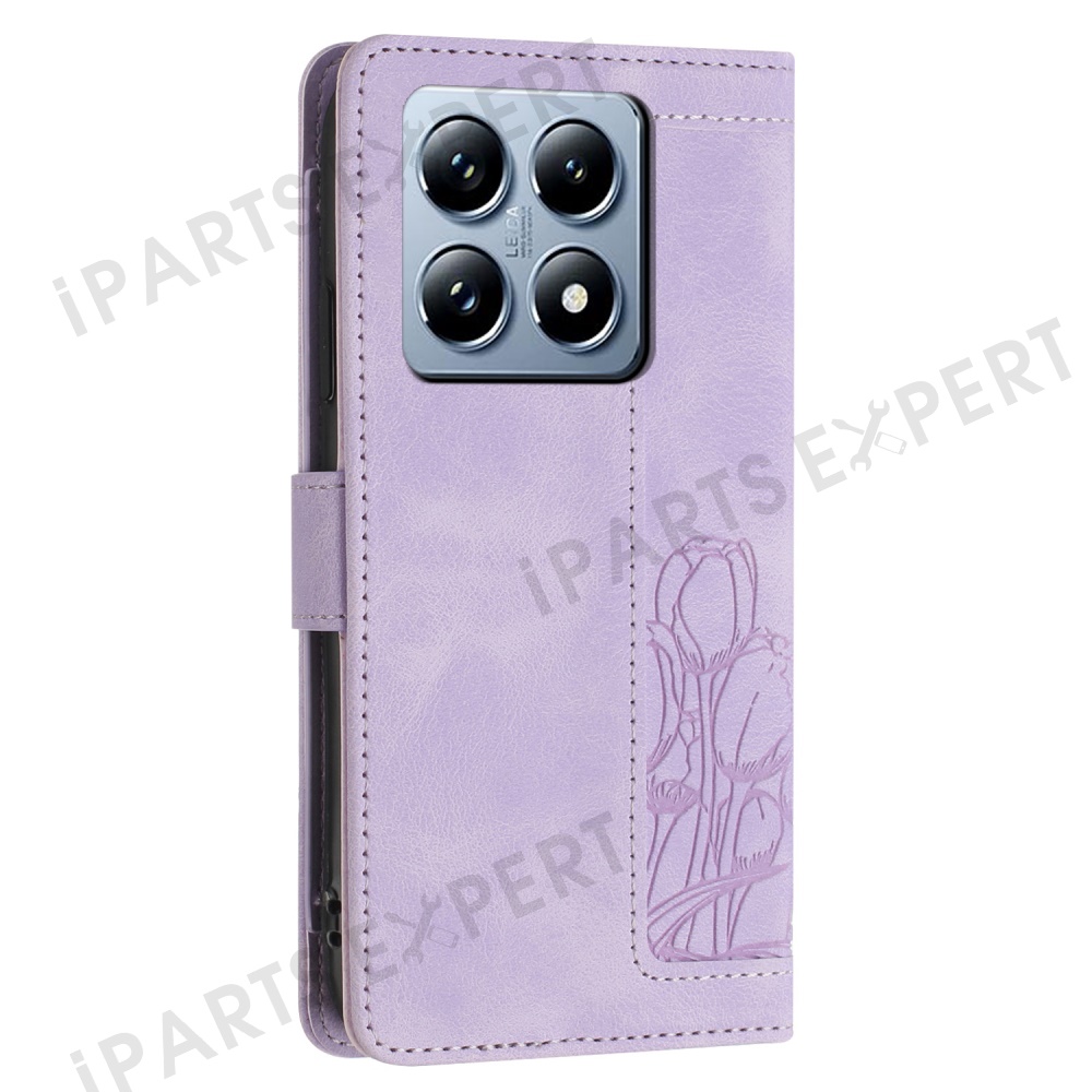 For Xiaomi 14T Tulip Leather Case Phone Cover with 5 Card Slots Wallet - Purple