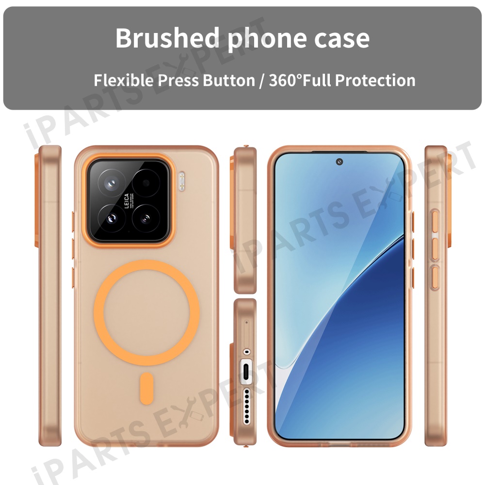 For Xiaomi 15 Magnetic Case TPU + PC Slim Matte Translucent Phone Cover - Orange