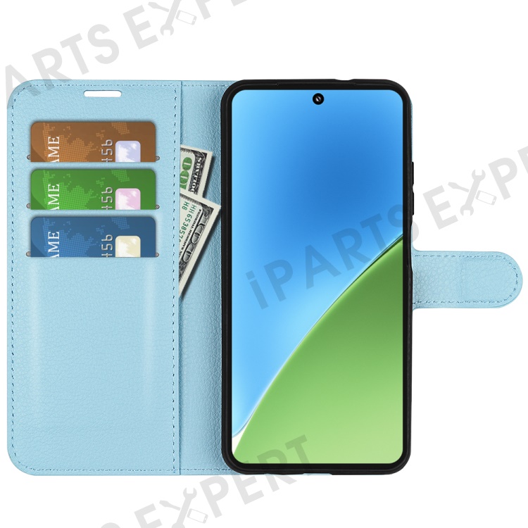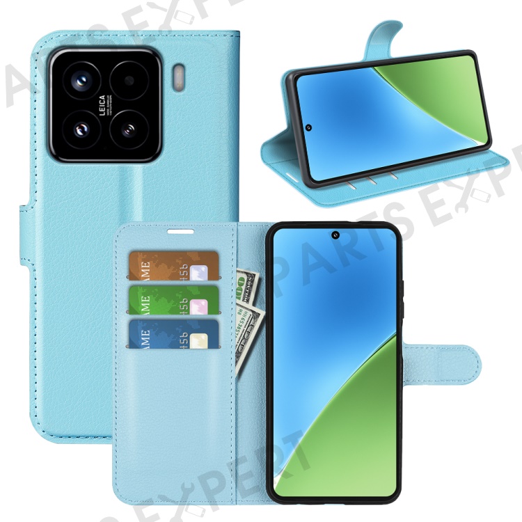 For Xiaomi 15 Case Litchi Texture Shockproof Leather Wallet Phone Cover - Blue