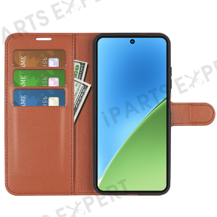 For Xiaomi 15 Case Litchi Texture Shockproof Leather Wallet Phone Cover - Brown