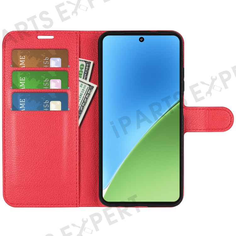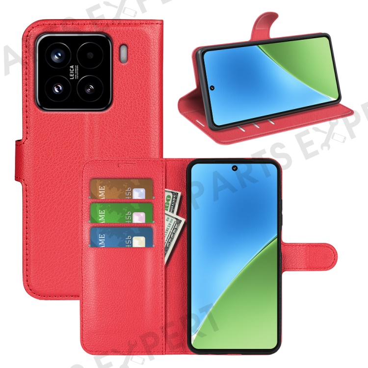 For Xiaomi 15 Case Litchi Texture Shockproof Leather Wallet Phone Cover - Red
