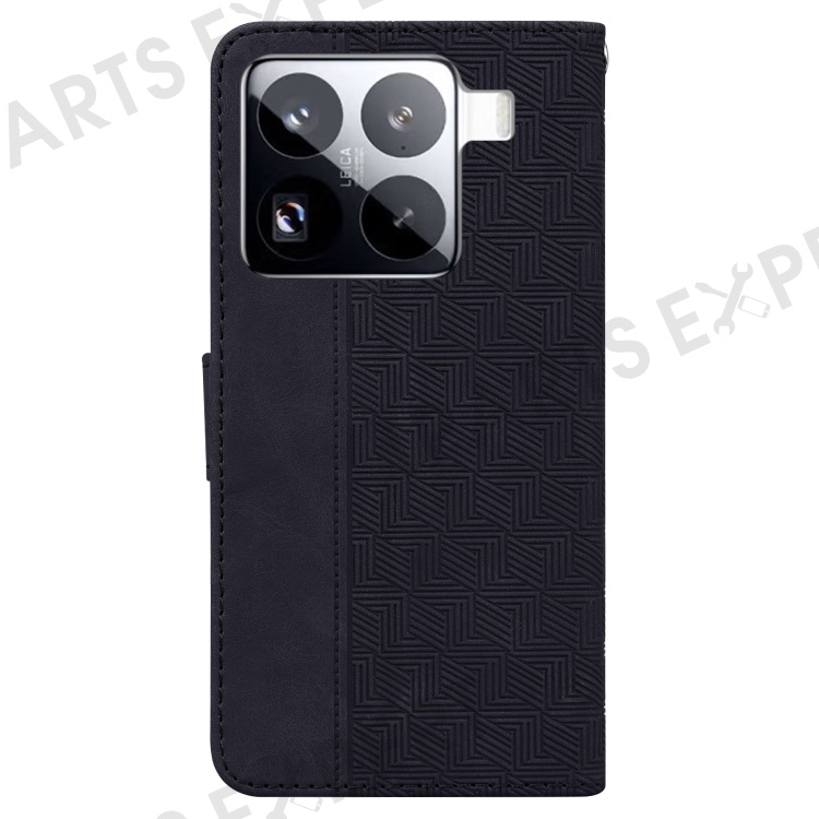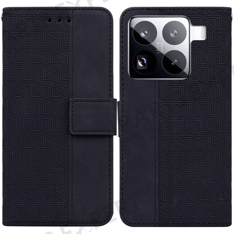 For Xiaomi 15 Pro Case Geometry Pattern Leather Wallet Phone Cover with Wrist Strap - Black