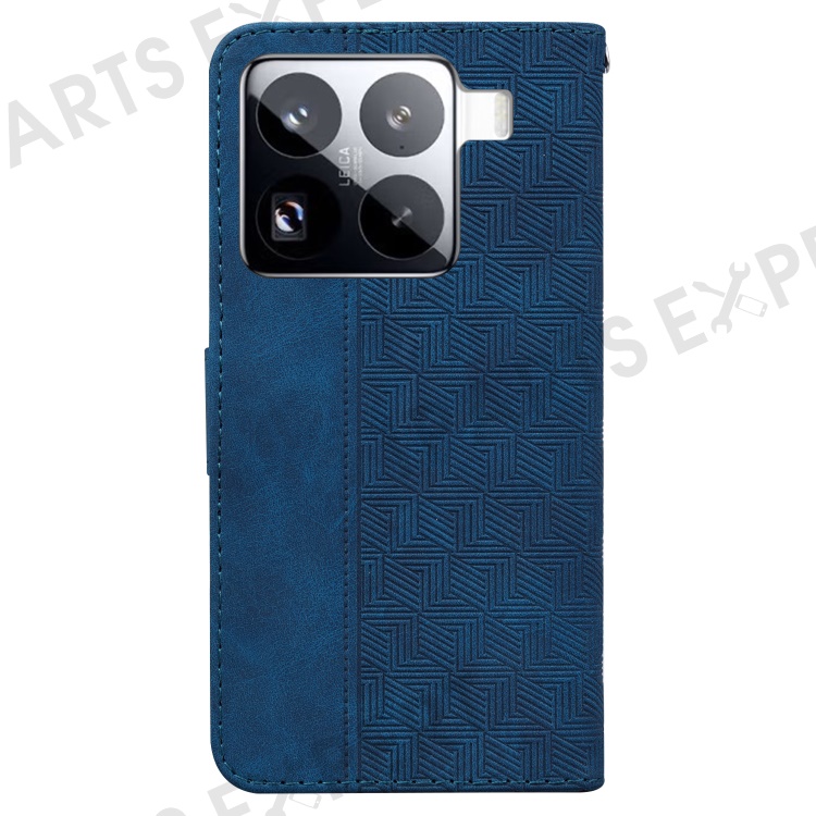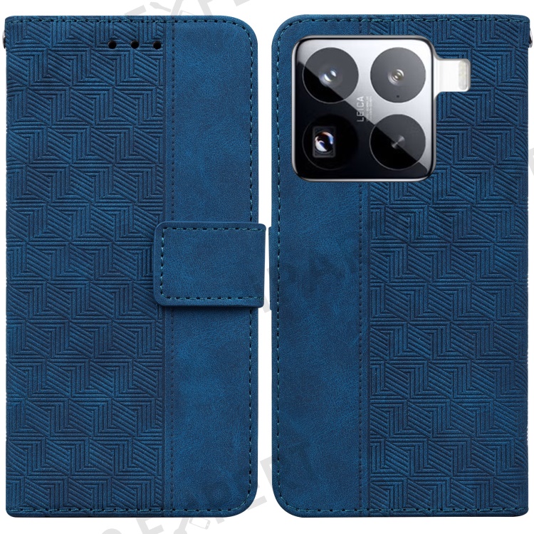 For Xiaomi 15 Pro Case Geometry Pattern Leather Wallet Phone Cover with Wrist Strap - Dark Blue