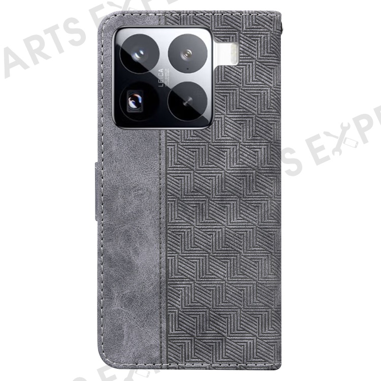 For Xiaomi 15 Pro Case Geometry Pattern Leather Wallet Phone Cover with Wrist Strap - Grey