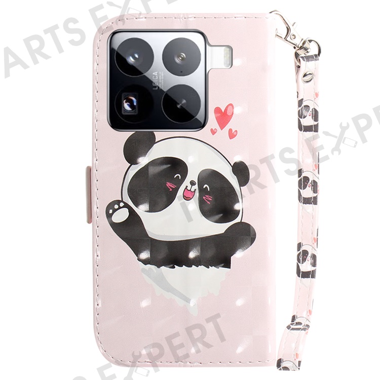For Xiaomi 15 Pro Case Pattern Printing Leather Wallet Phone Cover with Wrist Strap - Love Heart Panda