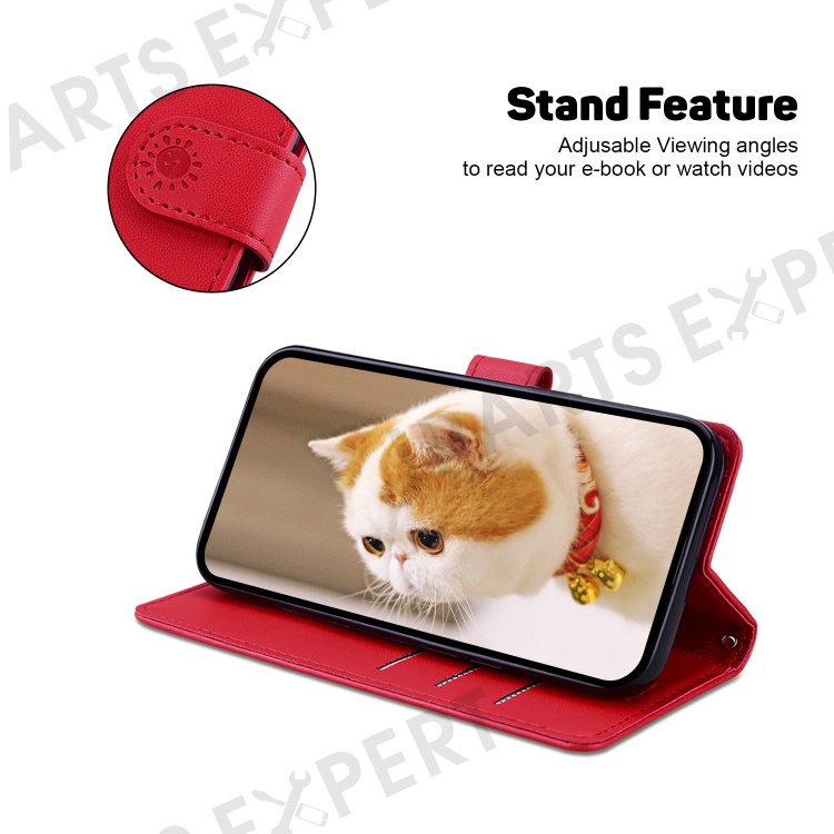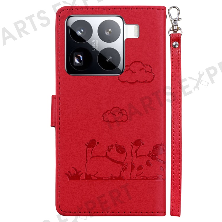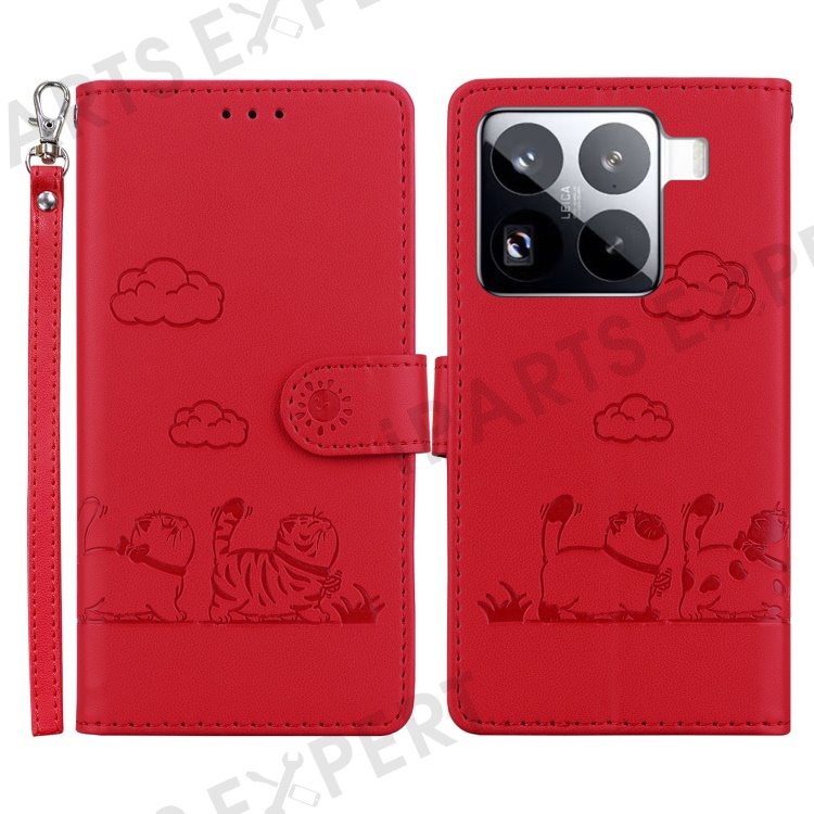 For Xiaomi 15 Pro Case RFID Blocking Kitten Pattern TPU+PU Leather Phone Cover - Red