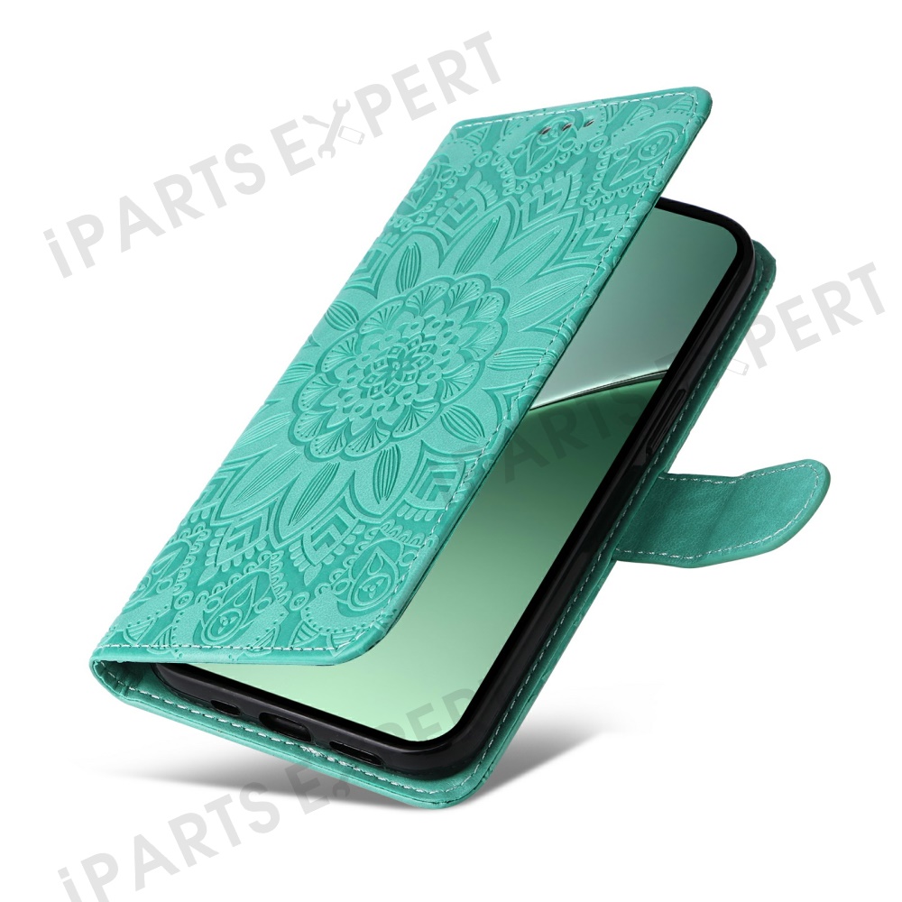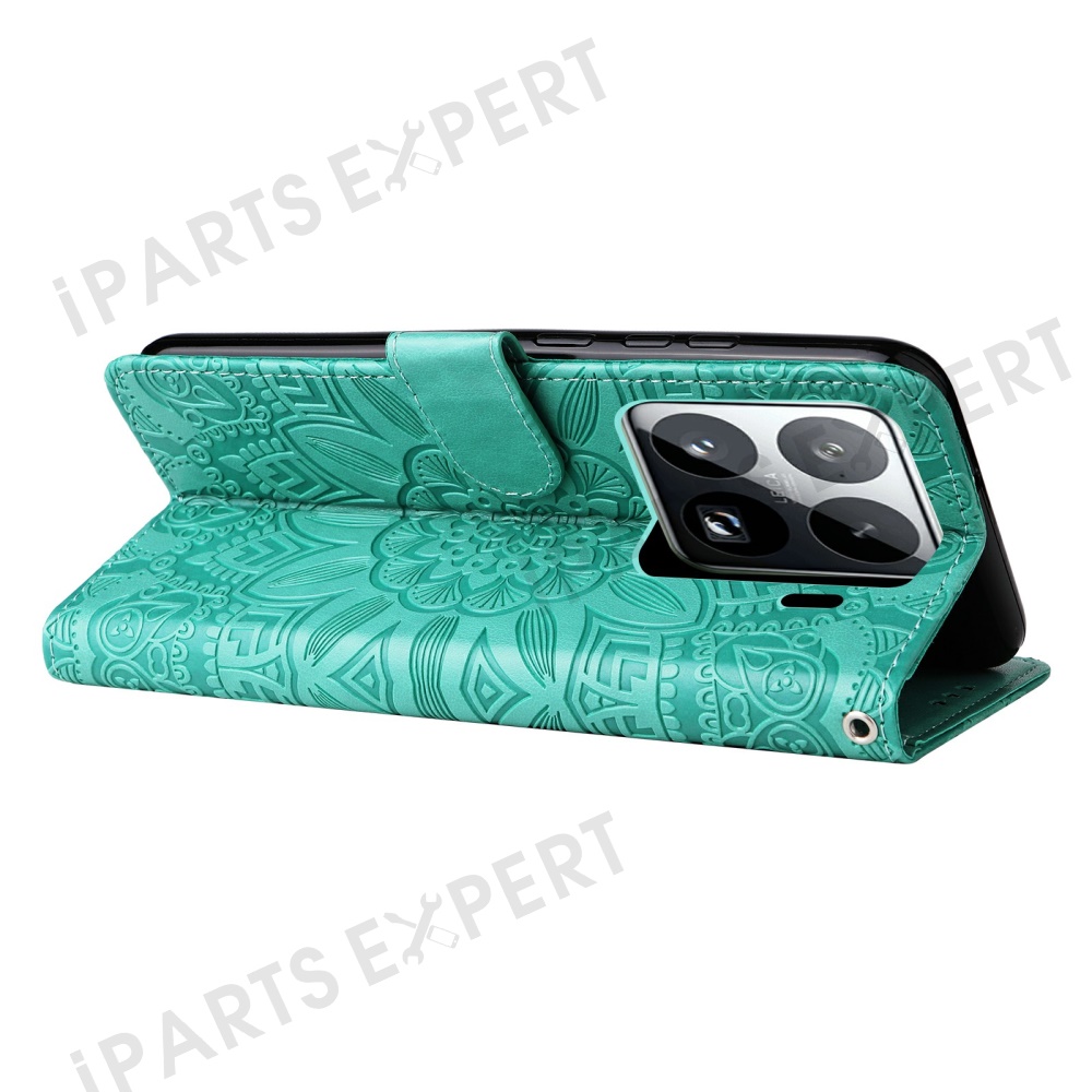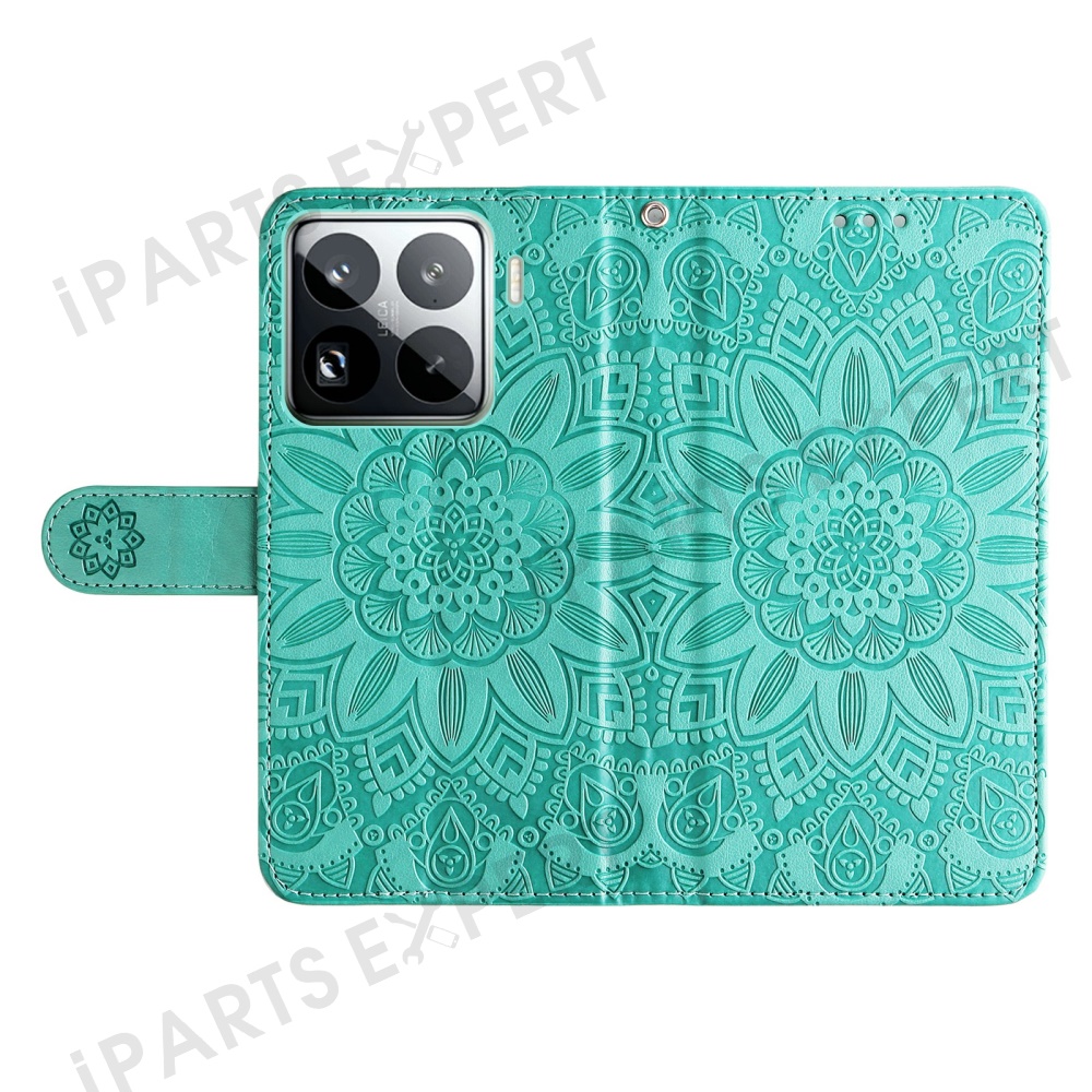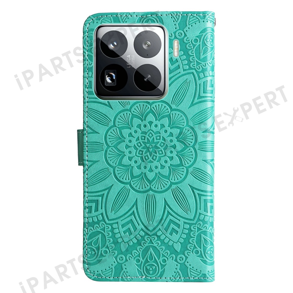 For Xiaomi 15 Pro Case Sunflower Imprint Leather Wallet Phone Cover - Green