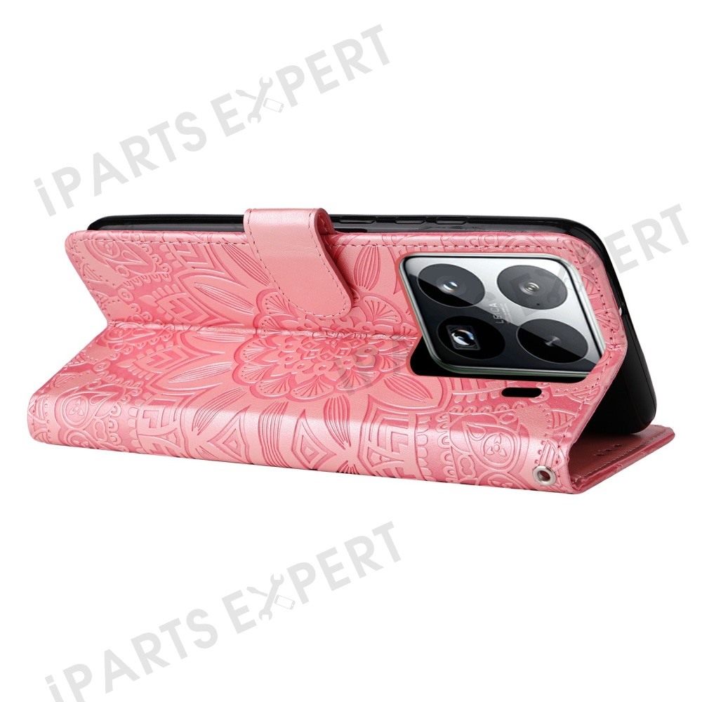 For Xiaomi 15 Pro Case Sunflower Imprint Leather Wallet Phone Cover - Pink
