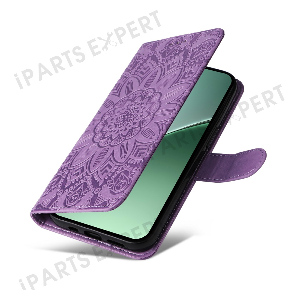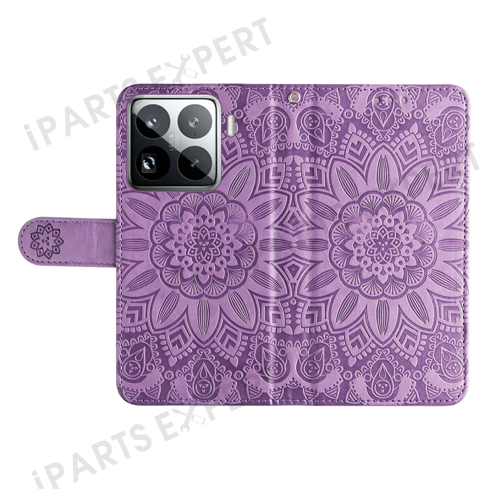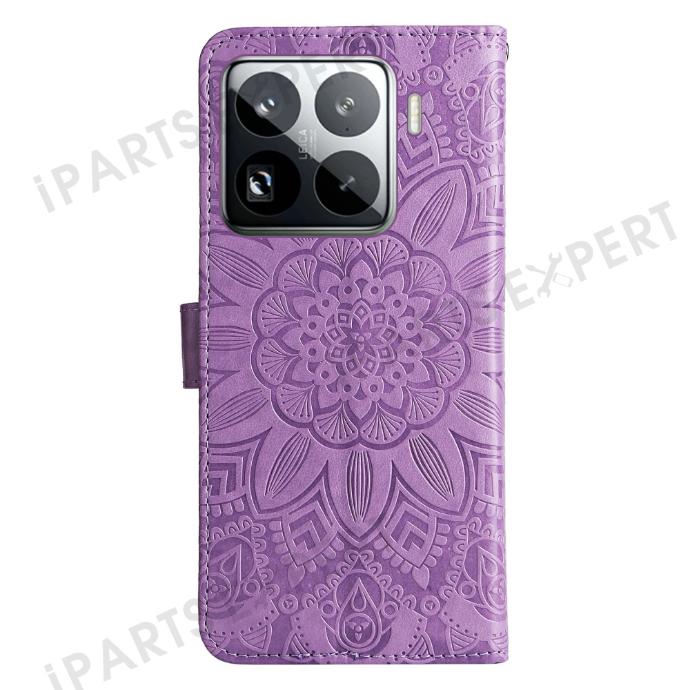 For Xiaomi 15 Pro Case Sunflower Imprint Leather Wallet Phone Cover - Purple