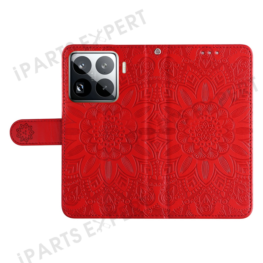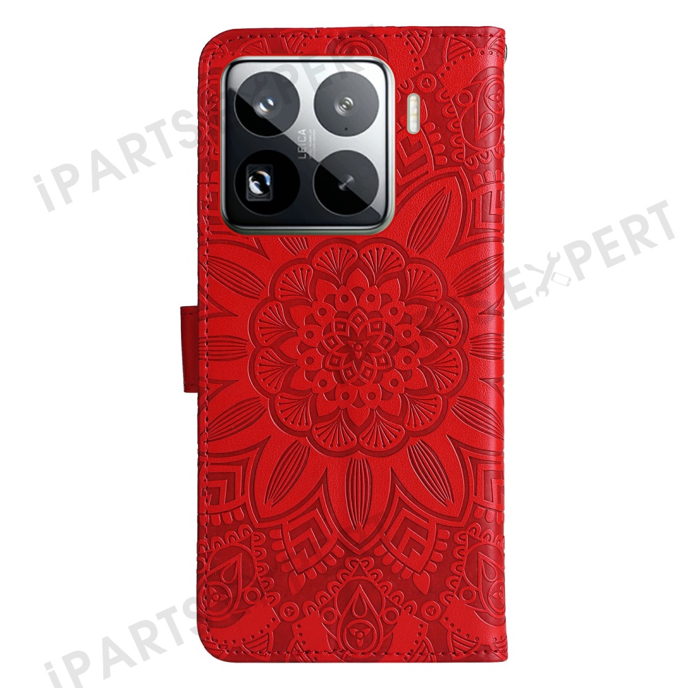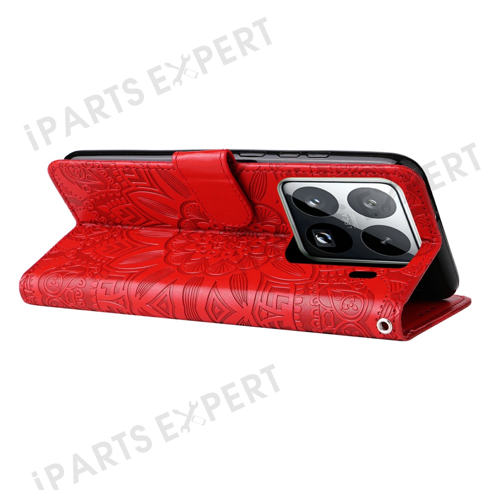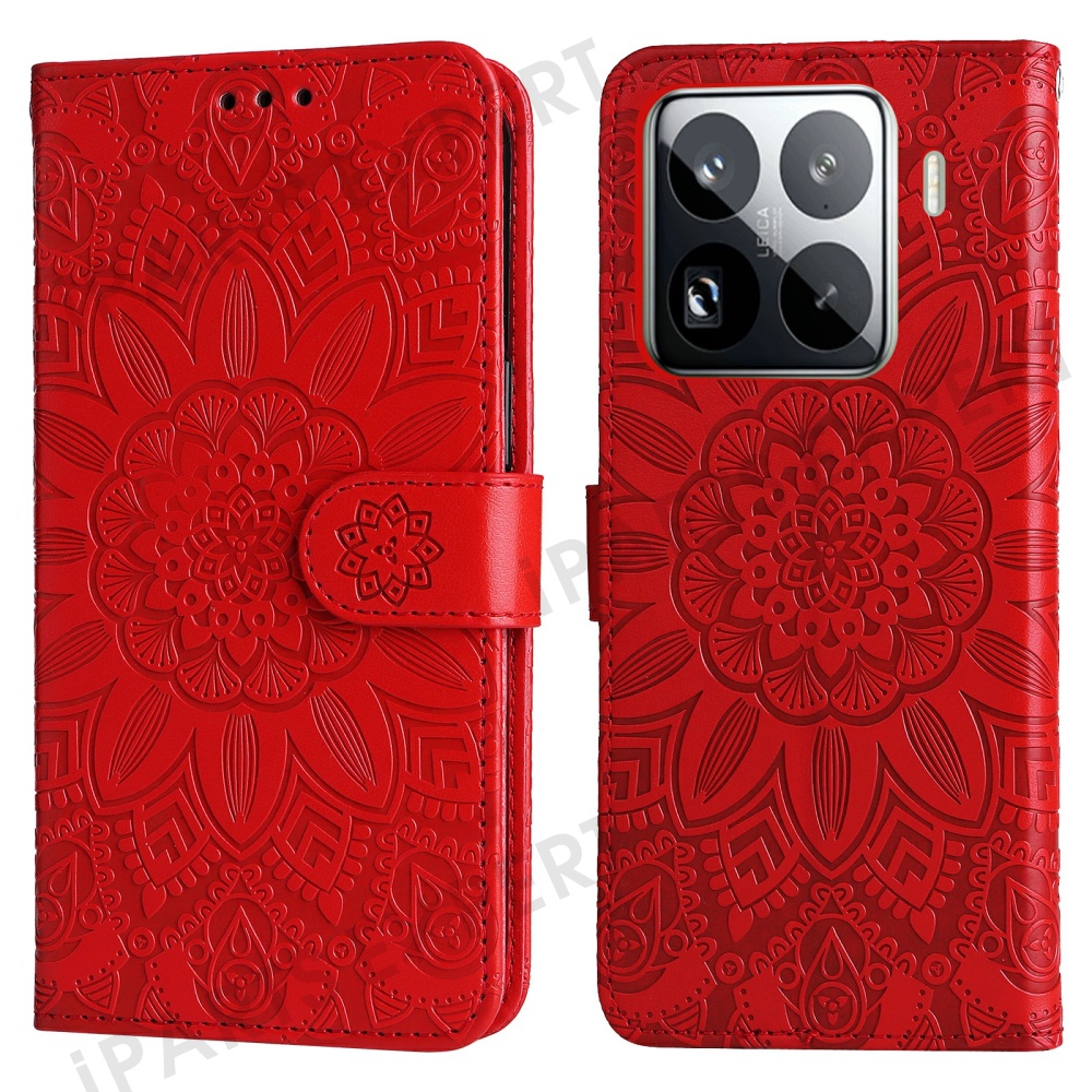 For Xiaomi 15 Pro Case Sunflower Imprint Leather Wallet Phone Cover - Red
