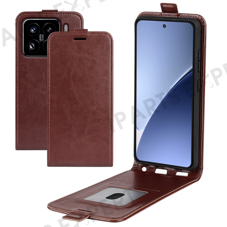 For Xiaomi 15 Pro Case with Card Slots Vertical Flip Leather Phone Cover - Brown