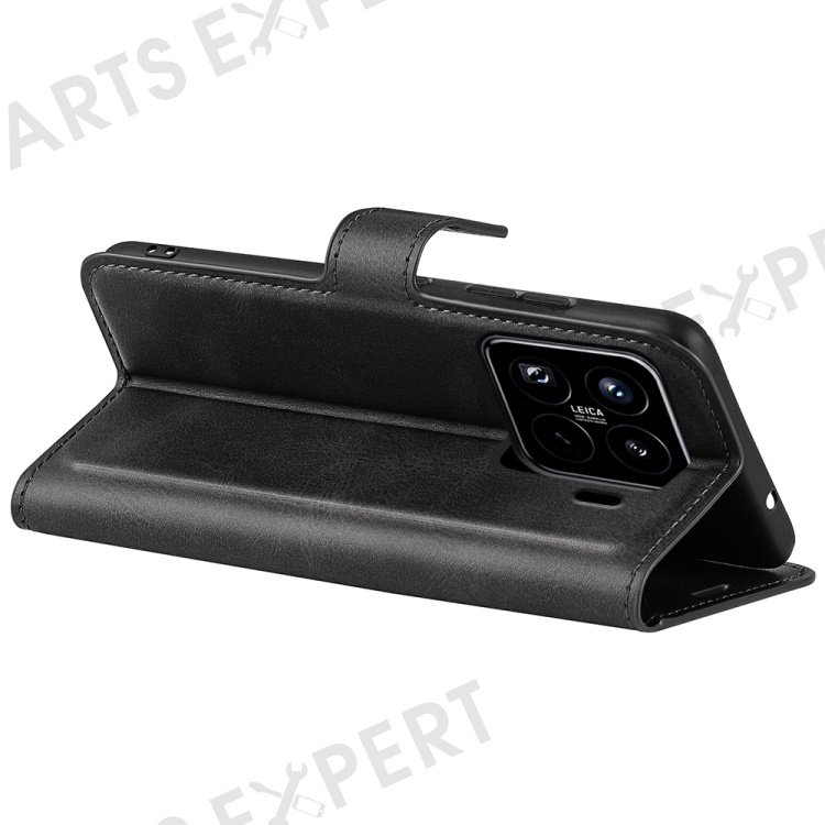 For Xiaomi 15 Pro Stand Case Anti-Scratch Calf Texture Leather Phone Cover - Black